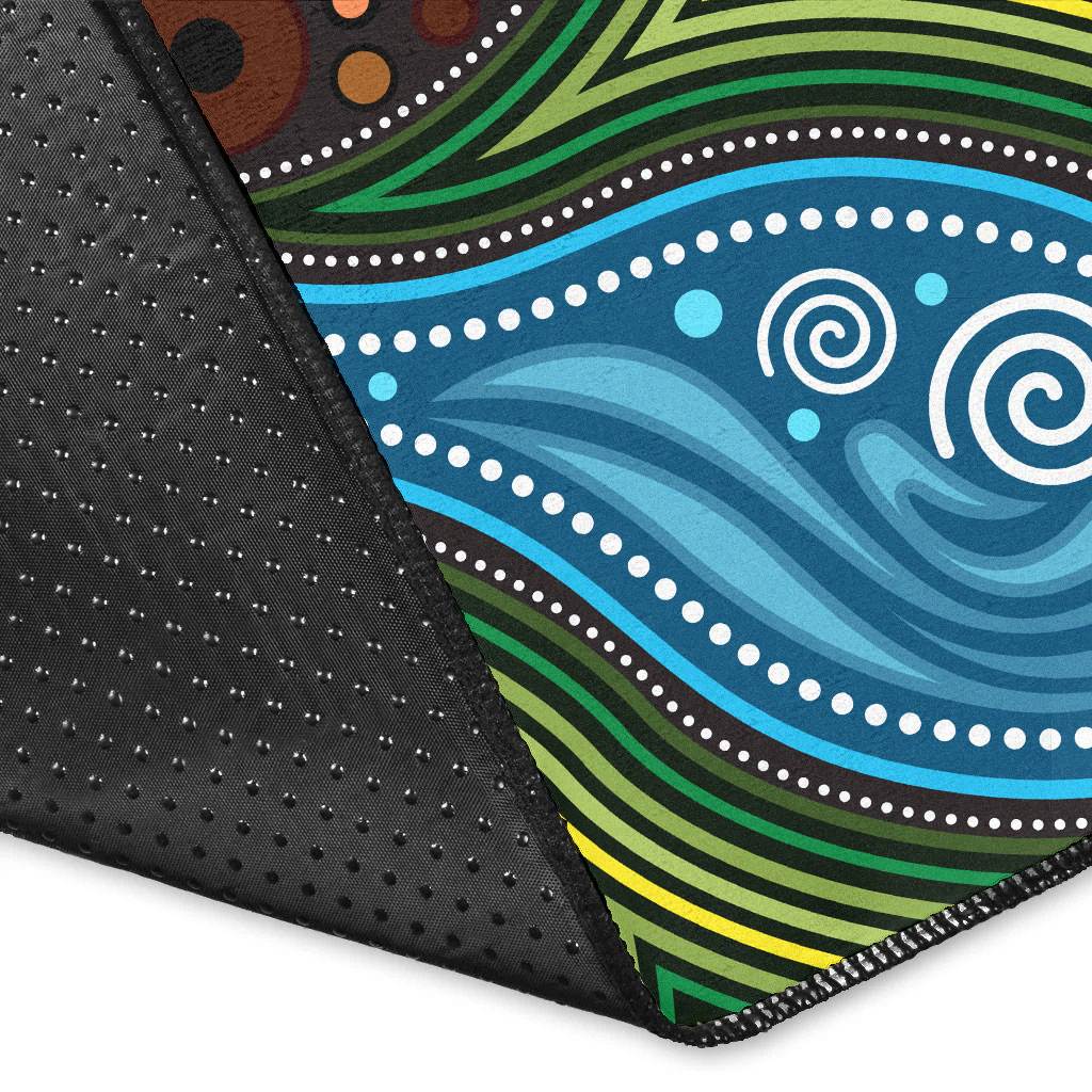 Australia Aboriginal Inspired Area Rug - Aboriginal Inspired Landscape Illustration of forest, river and land
