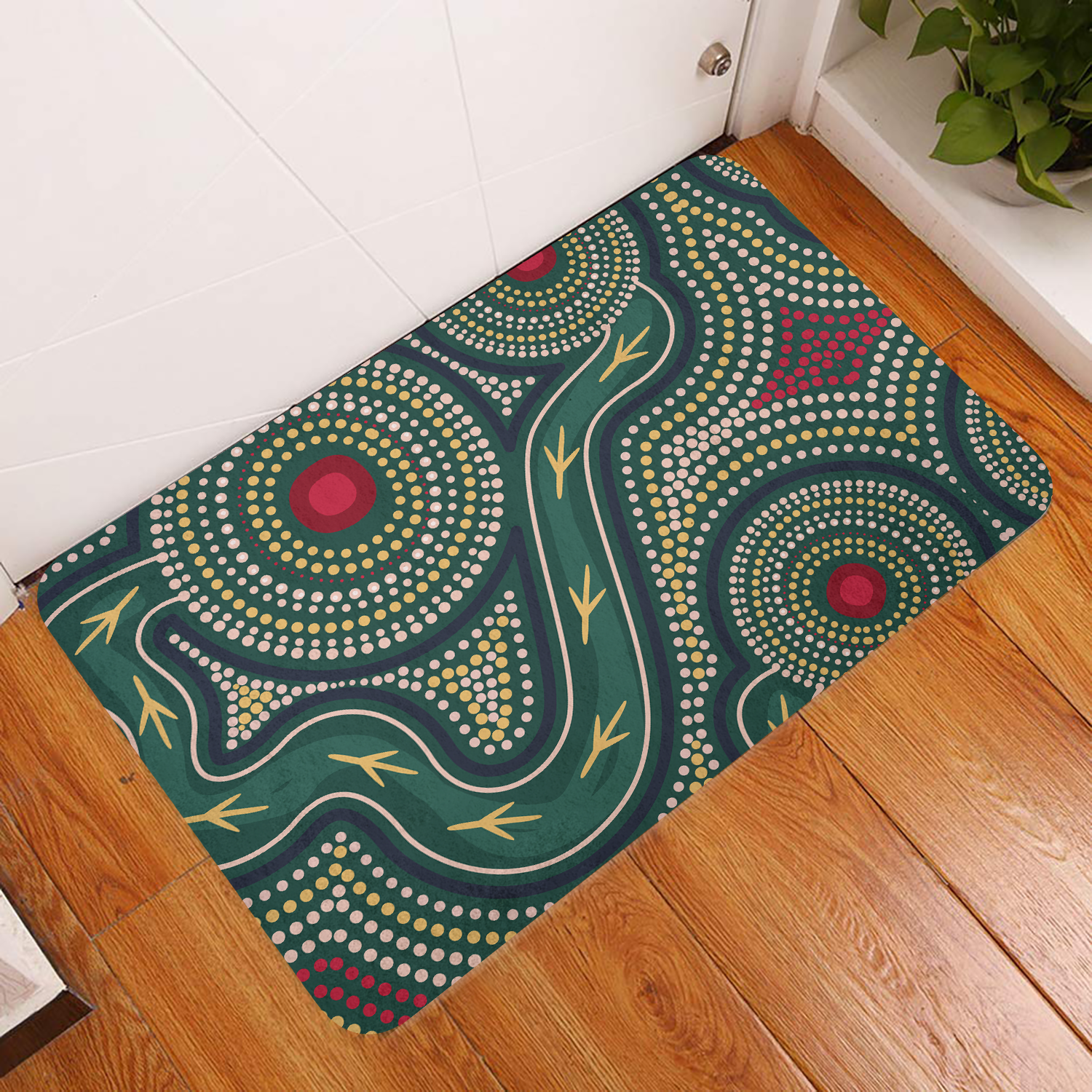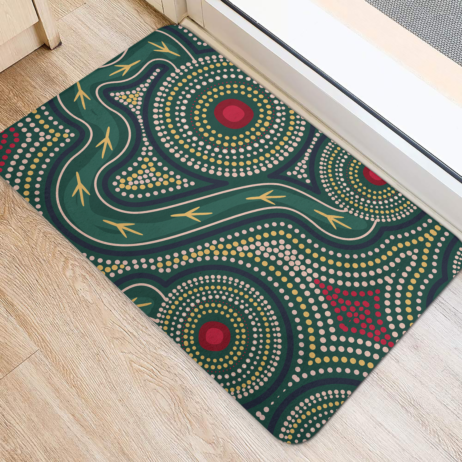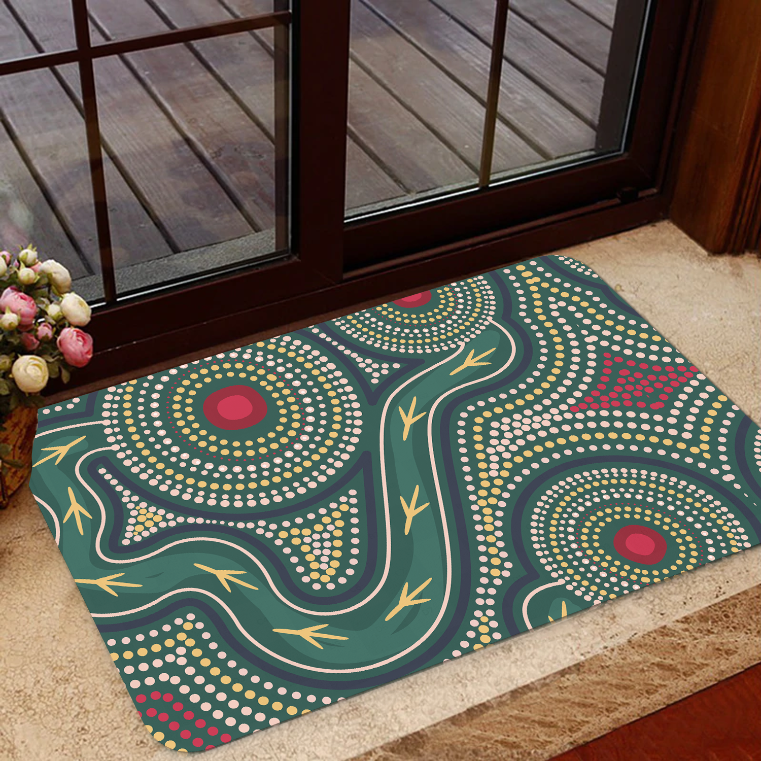 Australia Aboriginal Doormat - Green Aboriginal Dot Art Style Vector Painting Doormat