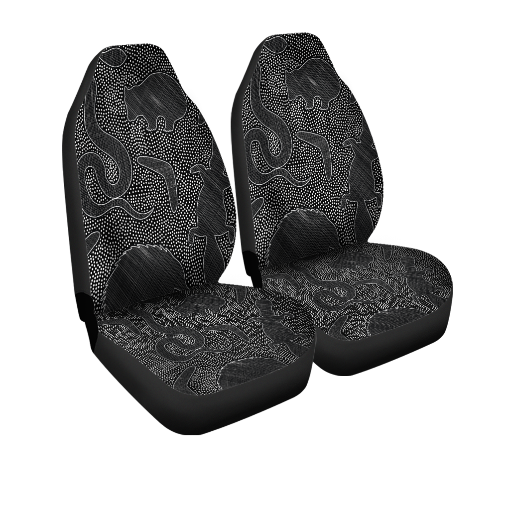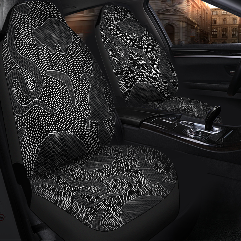 Australia Dot Painting Inspired Aboriginal Car Seat Cover - Aboriginal Dot Grey Art With Animals Car Seat Cover
