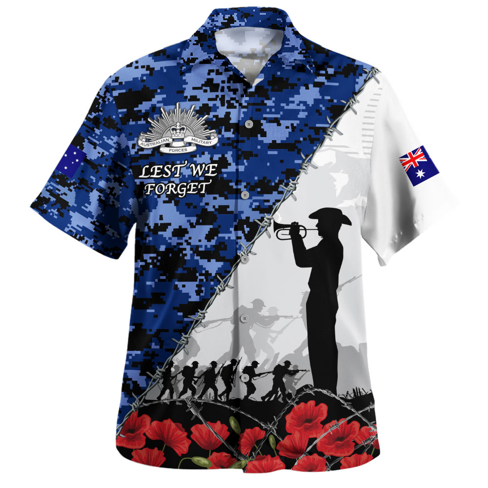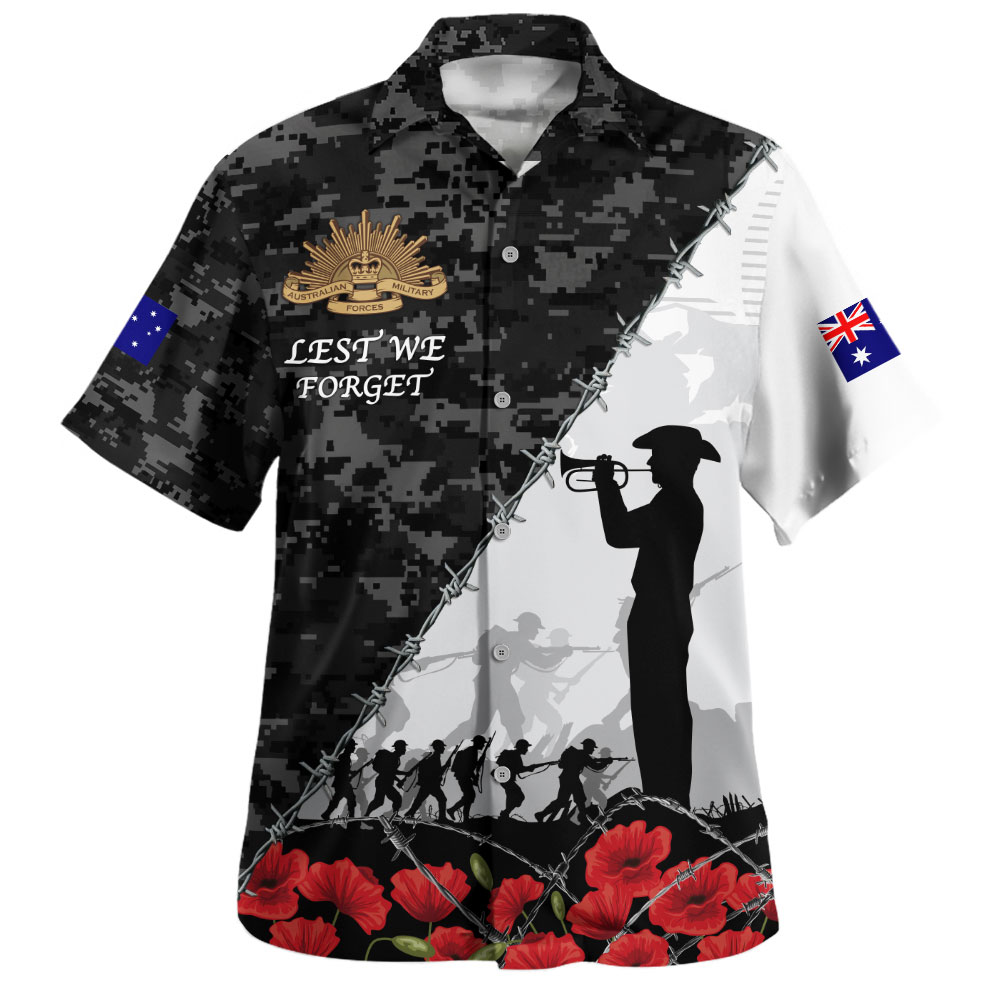 Australia Hawaiian Shirt Anzac Day Poppy And Barbed Wire Of Service