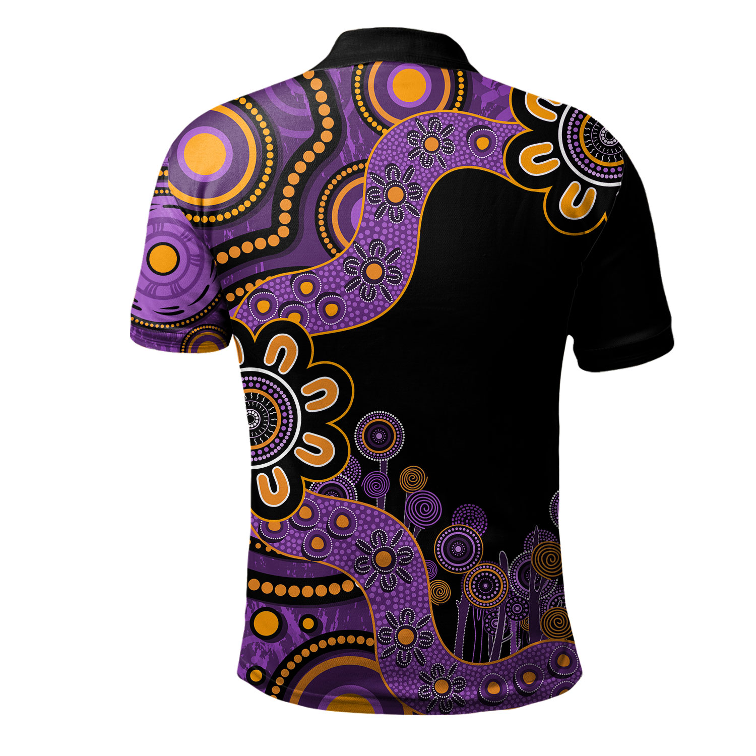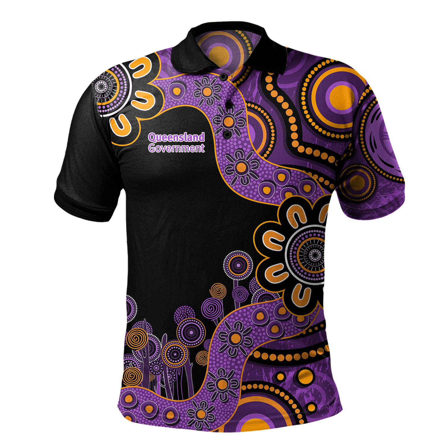 Australia Polo Shirt Aboriginal Indigenous Dot Painting Purple Queensland Government