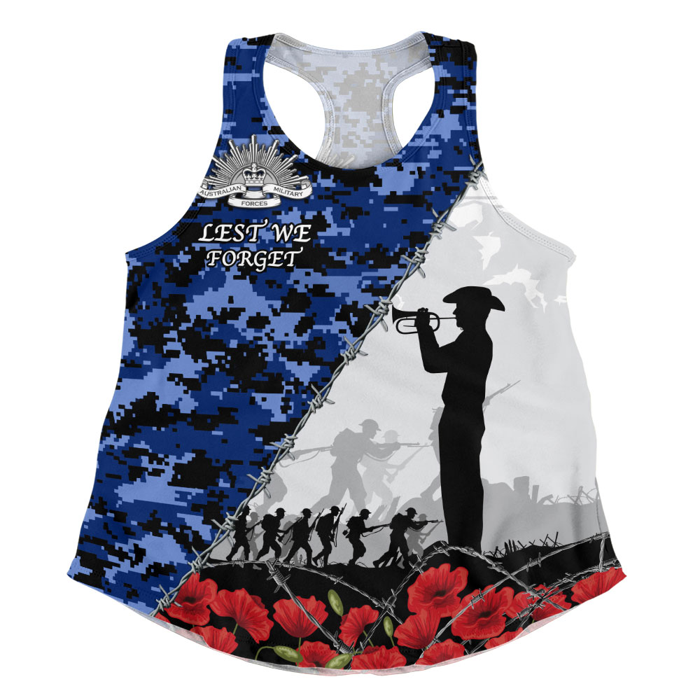 Australia Women Racerback Singlet Anzac Day Poppy And Barbed Wire Of Service