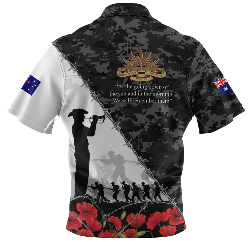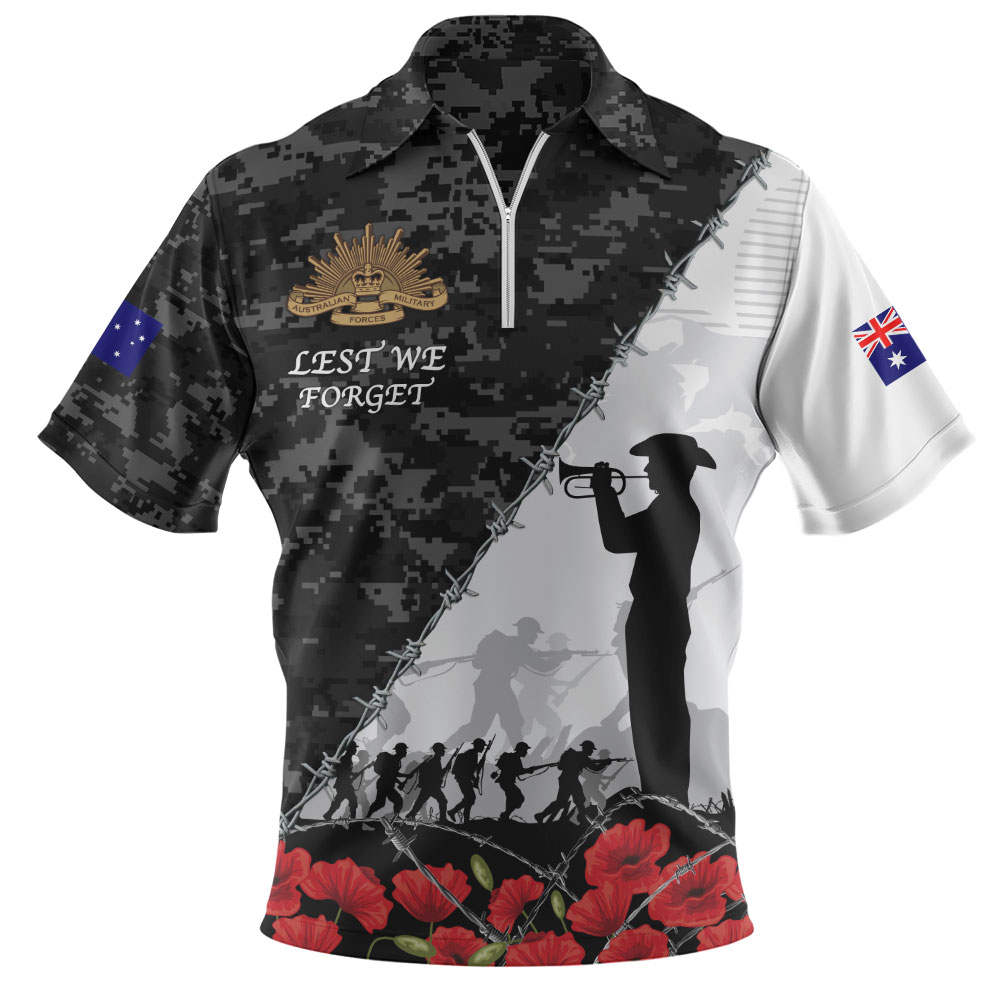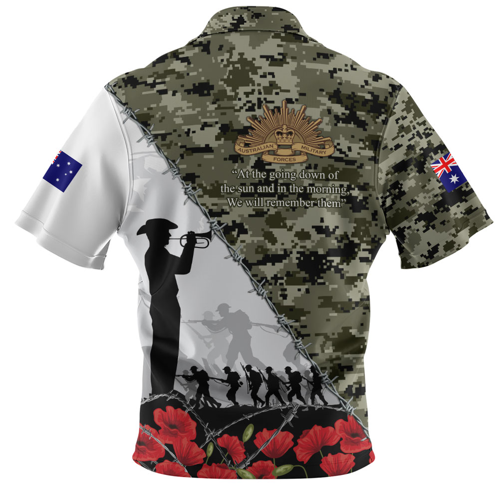 Australia Zip Polo Shirt Anzac Day Poppy And Barbed Wire Of Service