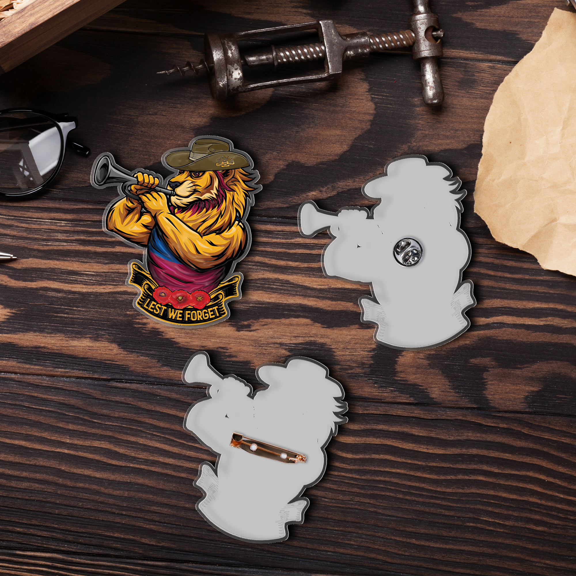 Brisbane Lions Acrylic Pin Lest We Forget Bugler