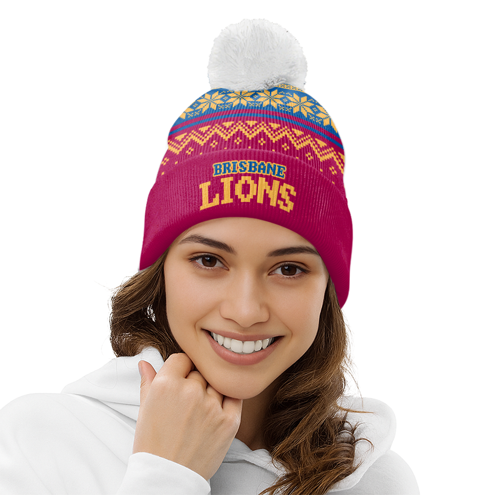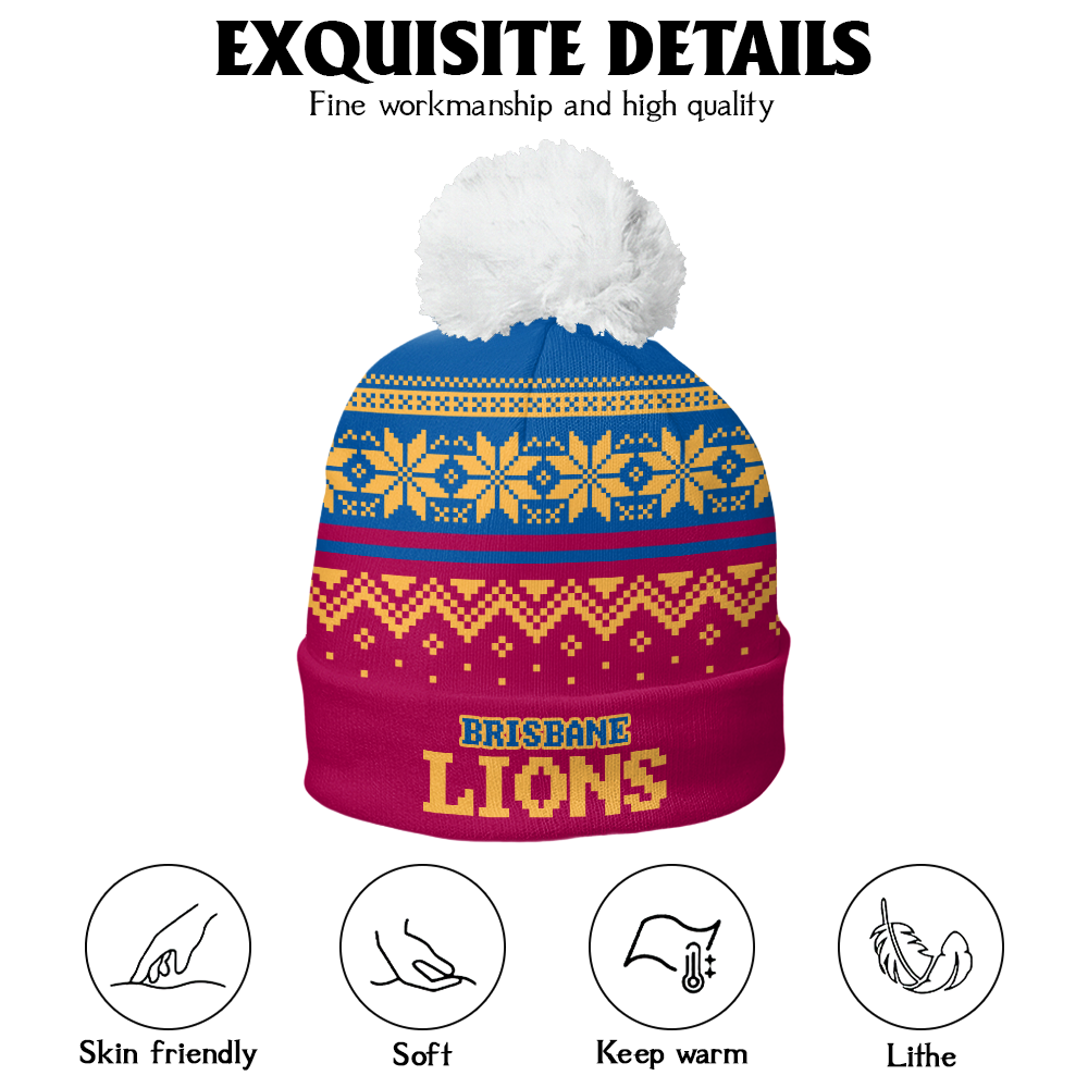 Brisbane Lions Bobble Beanie Hat Merry Christmas Knit Edition For United Fans