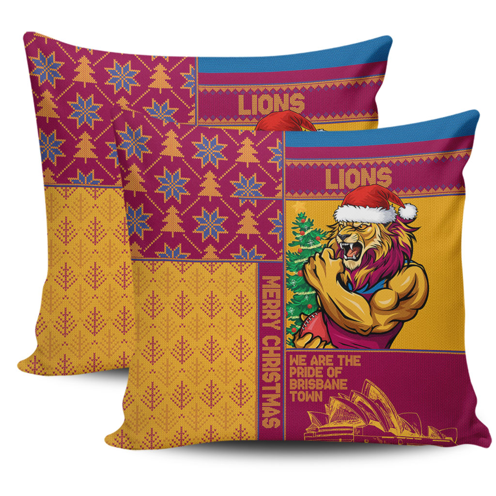 Brisbane Lions Pillow Cases Christmas Magic Knit Style Winter Glow