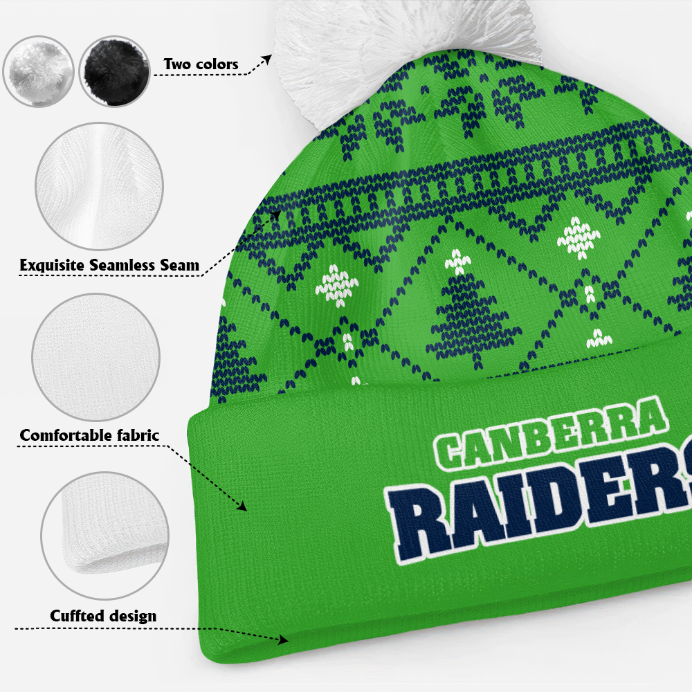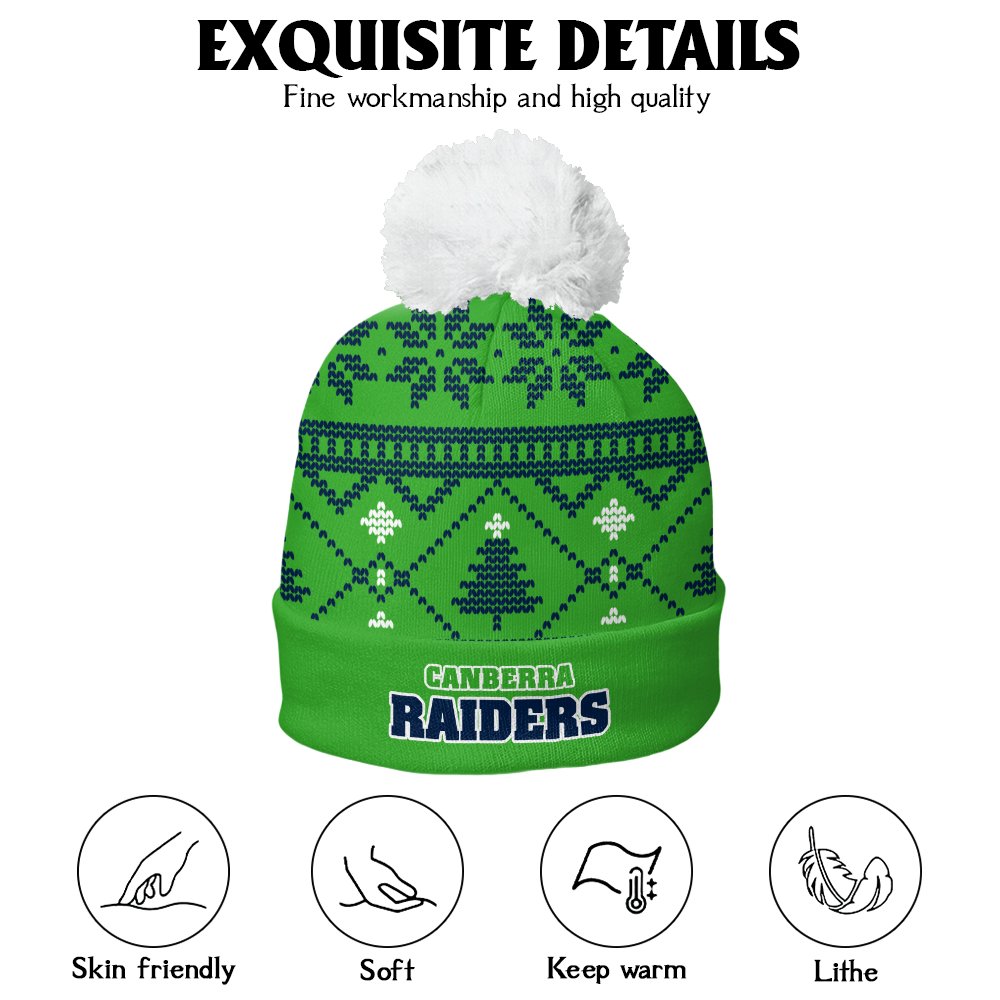 Canberra Raiders Bobble Beanie Hat Merry Christmas Game Ready Team Knit Edition