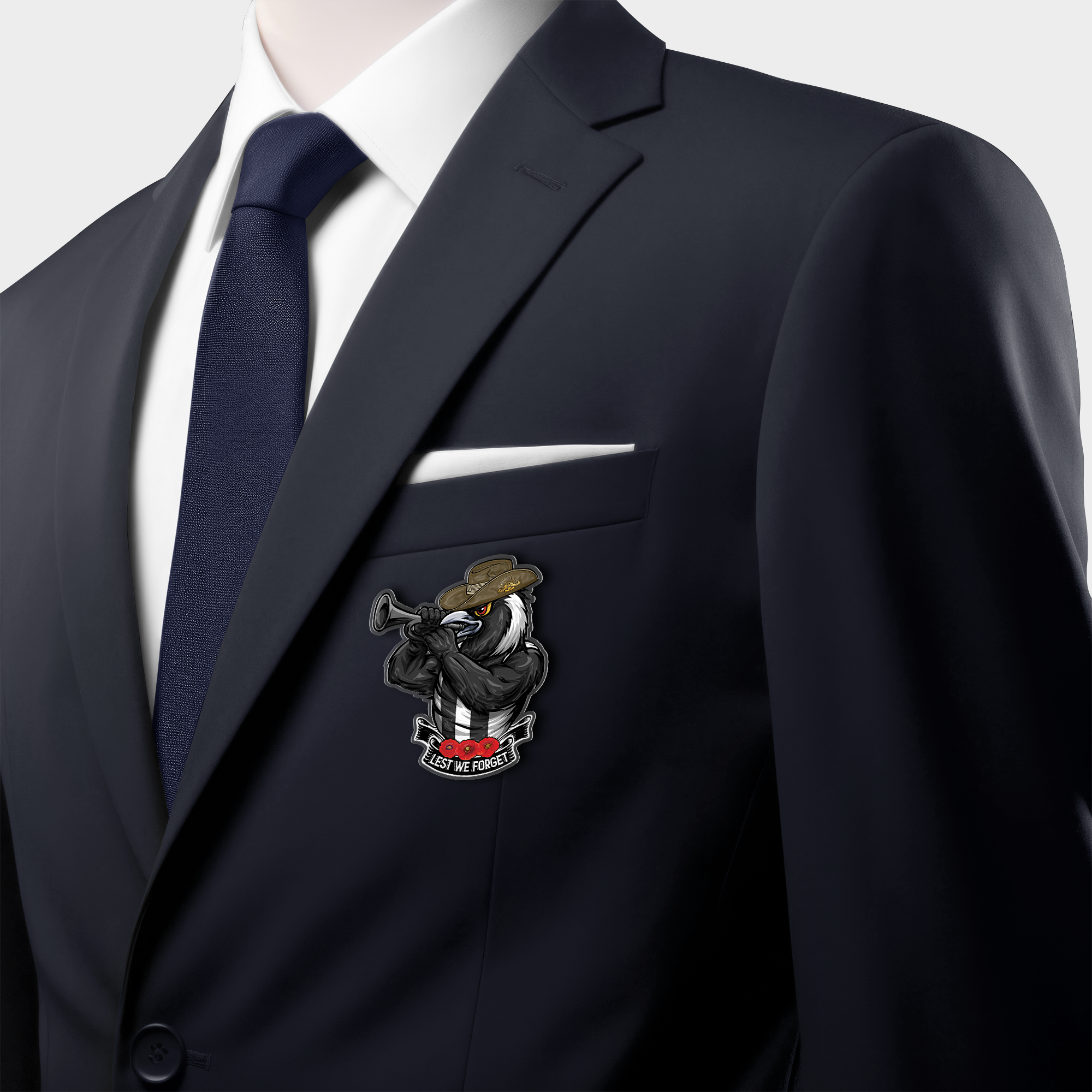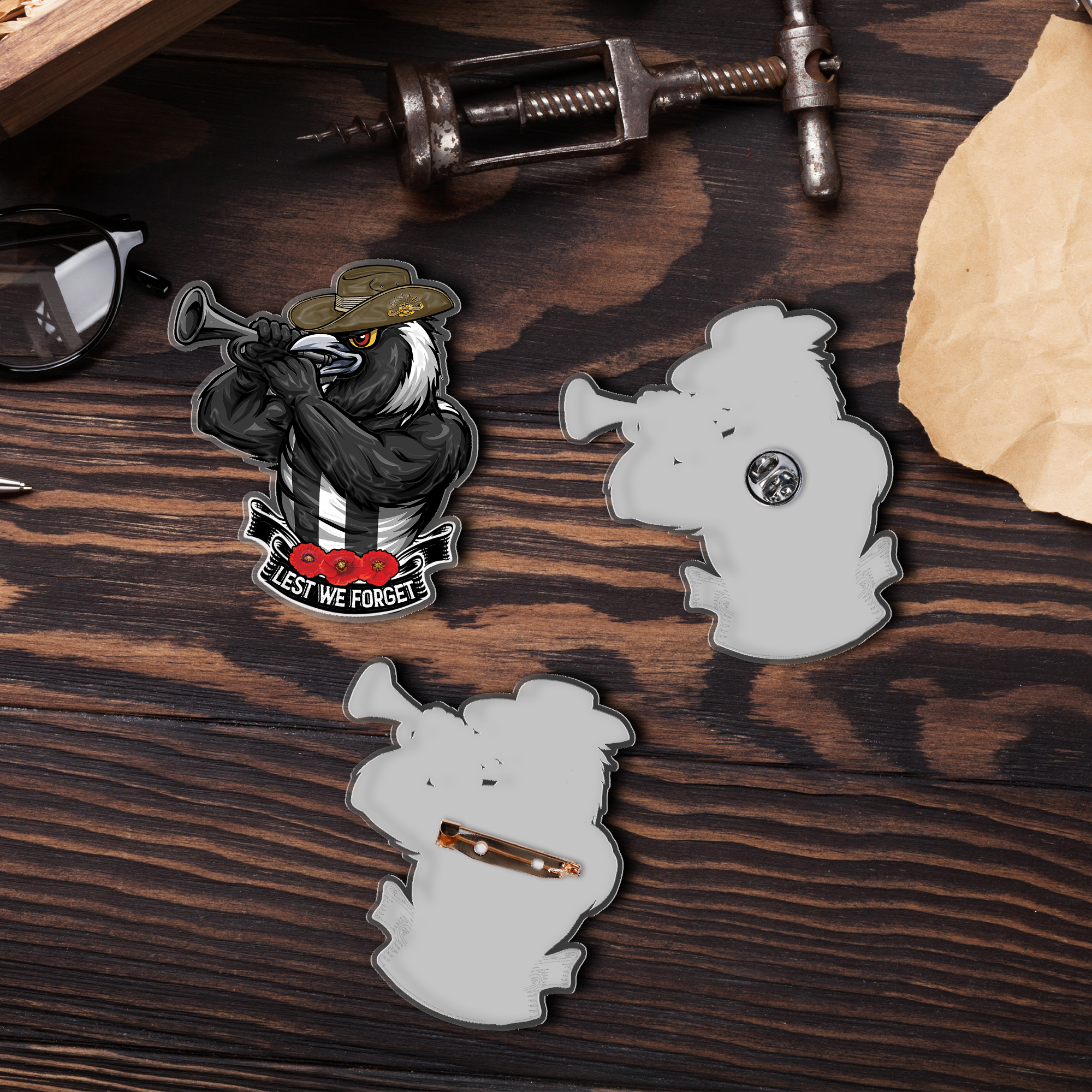 Collingwood Acrylic Pin Lest We Forget Bugler
