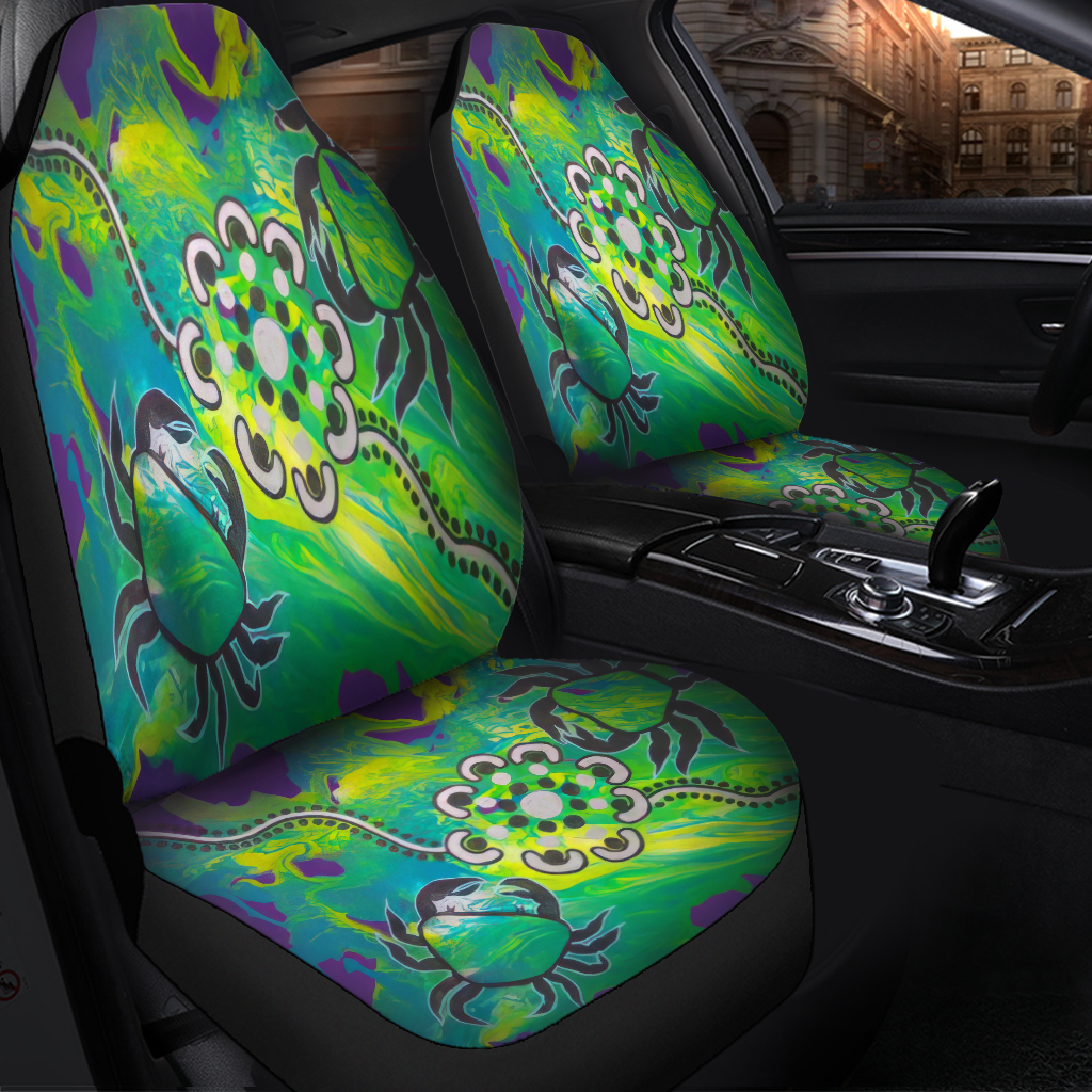 Custom Australia Car Seat Covers Aboriginal Dot Painting Green