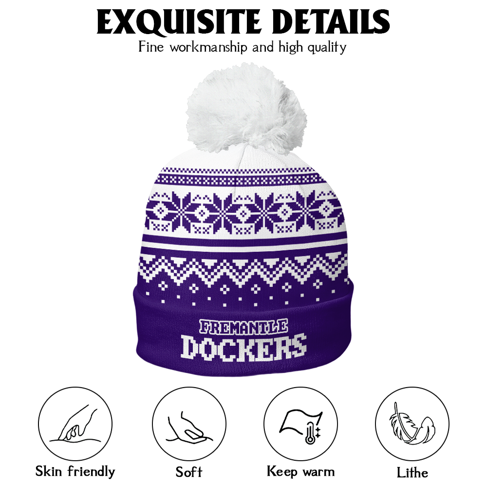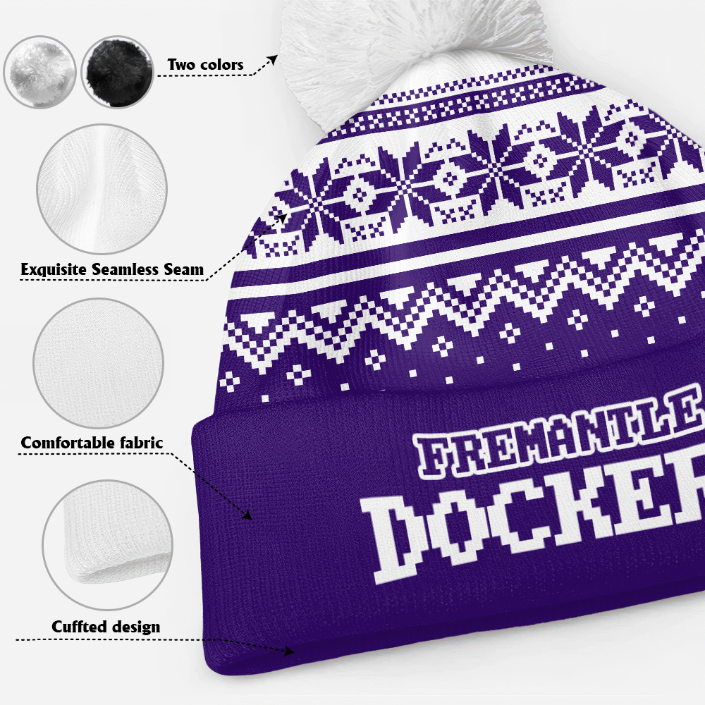 Fremantle Bobble Beanie Hat Merry Christmas Knit Edition For United Fans