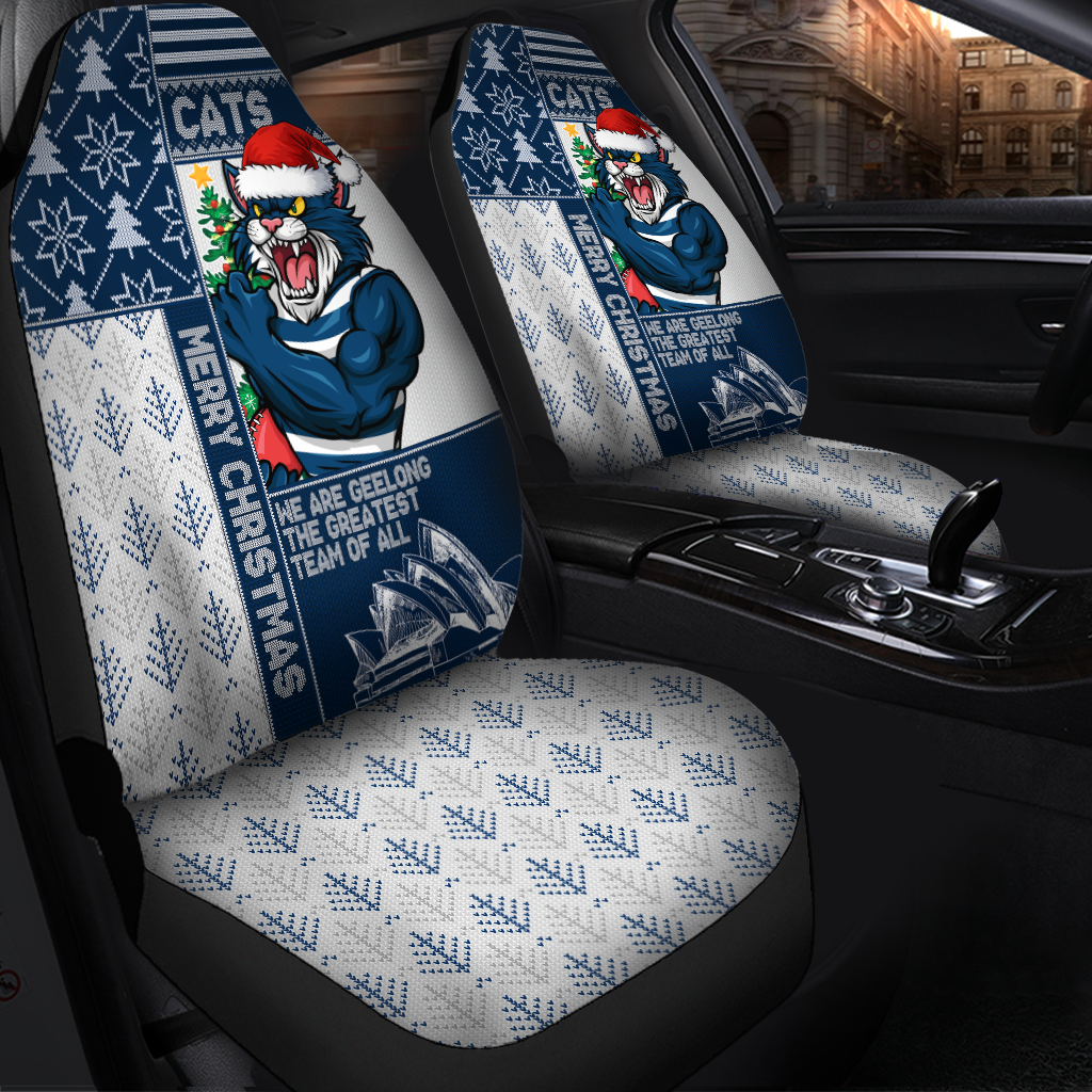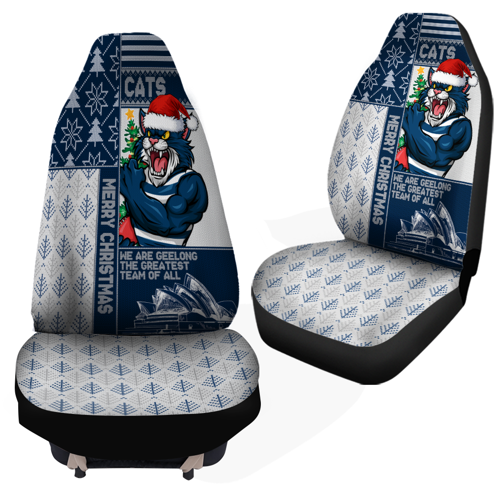 Geelong Cats Car Seat Cover Christmas Magic Knit Style Winter Glow