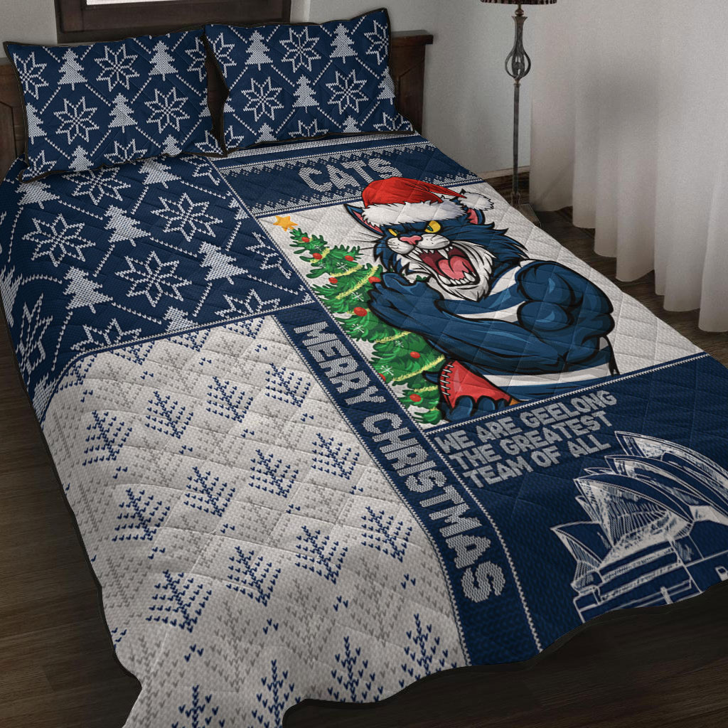 Geelong Cats Quilt Bed Set Christmas Magic Knit Style Winter Glow
