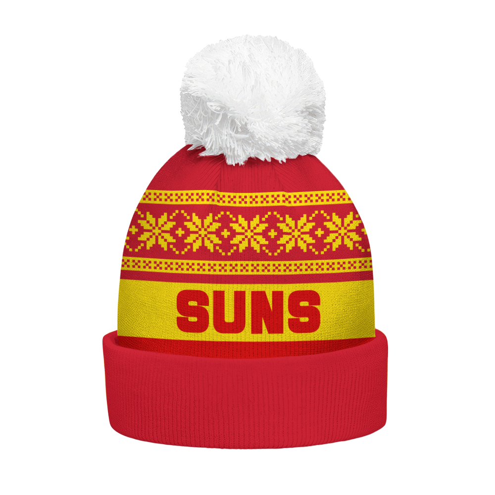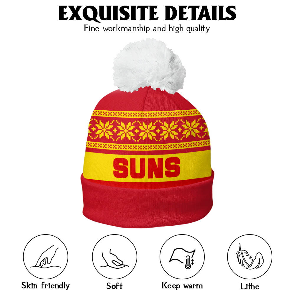 Gold Coast SUNS Bobble Beanie Hat Festive Season Merry Christmas Game Day