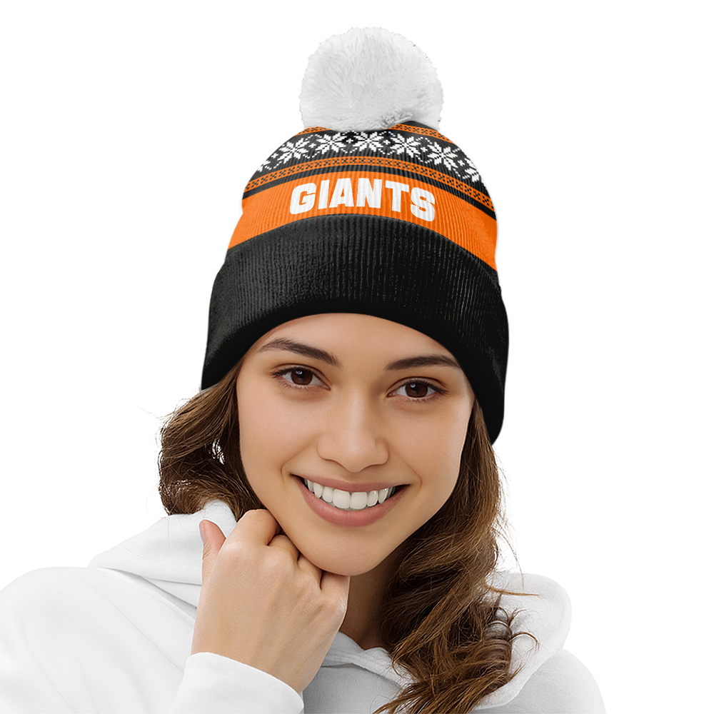GWS GIANTS Bobble Beanie Hat Festive Season Merry Christmas Game Day