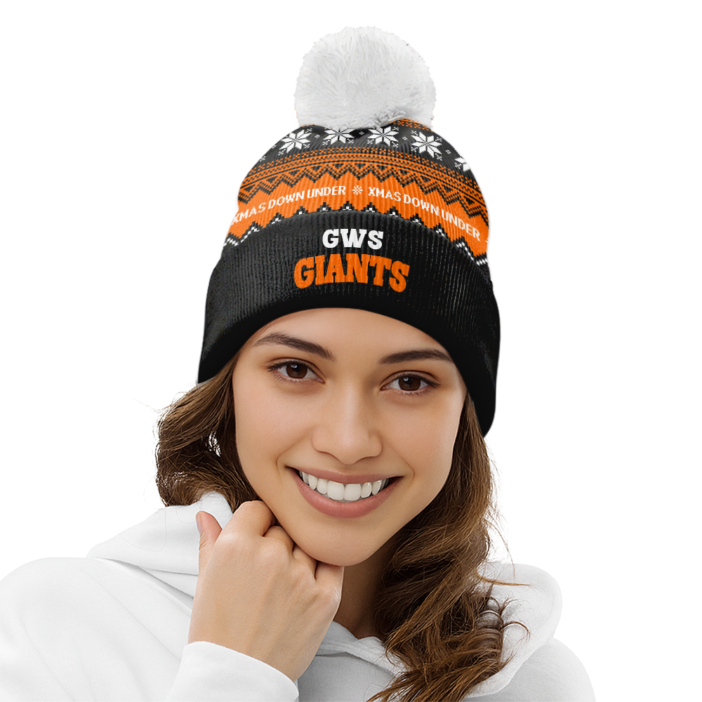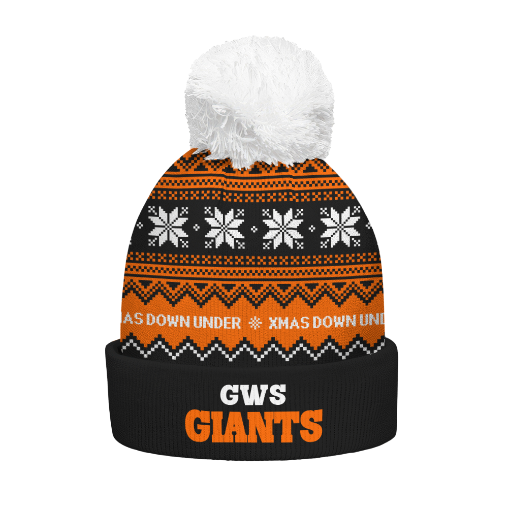 GWS GIANTS Bobble Beanie Hat Merry Christmas United Fans Festive Knit Style