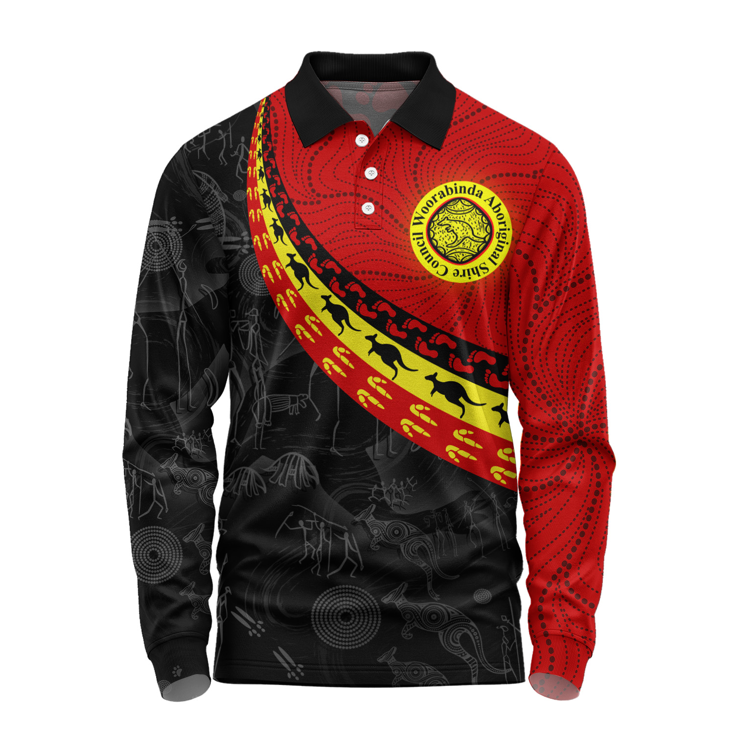 Indigenous Australian Aboriginal Long Sleeve Polo Shirt Aboriginal Dreamtime Kangaroo Path