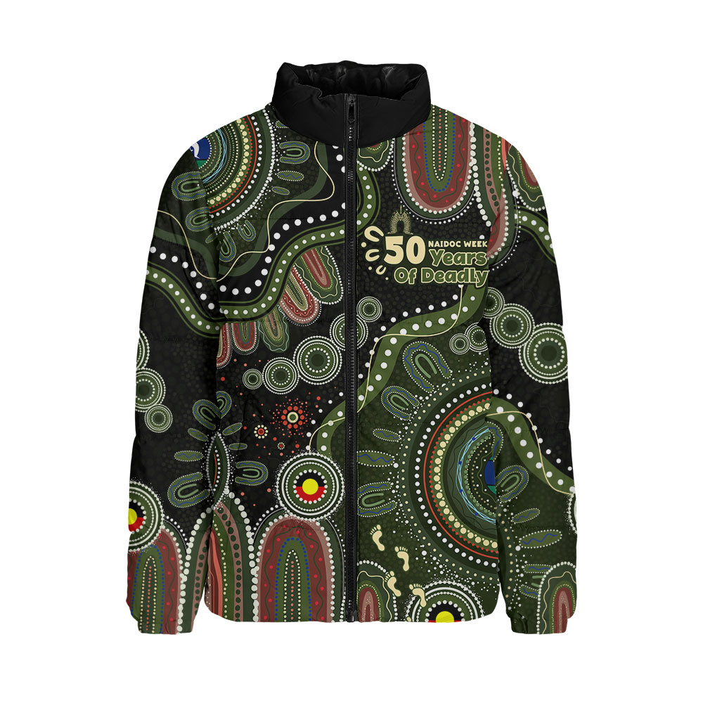 Indigenous Australian Aboriginal Padded Jacket NAIDOC Week Sacred Aboriginal Tracks Of Country Spirit