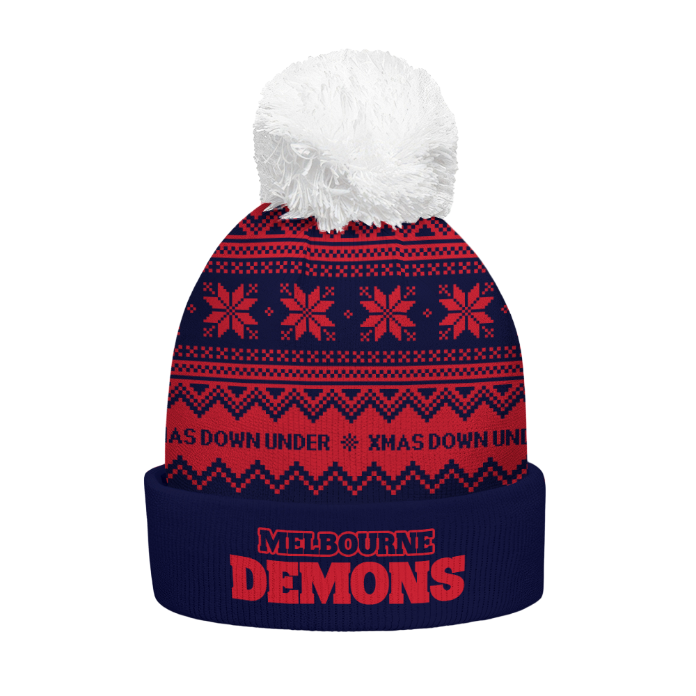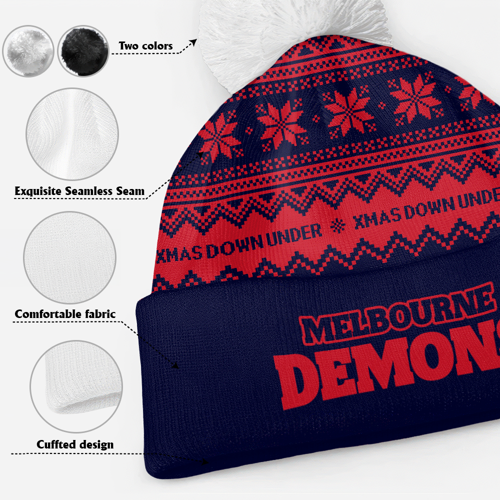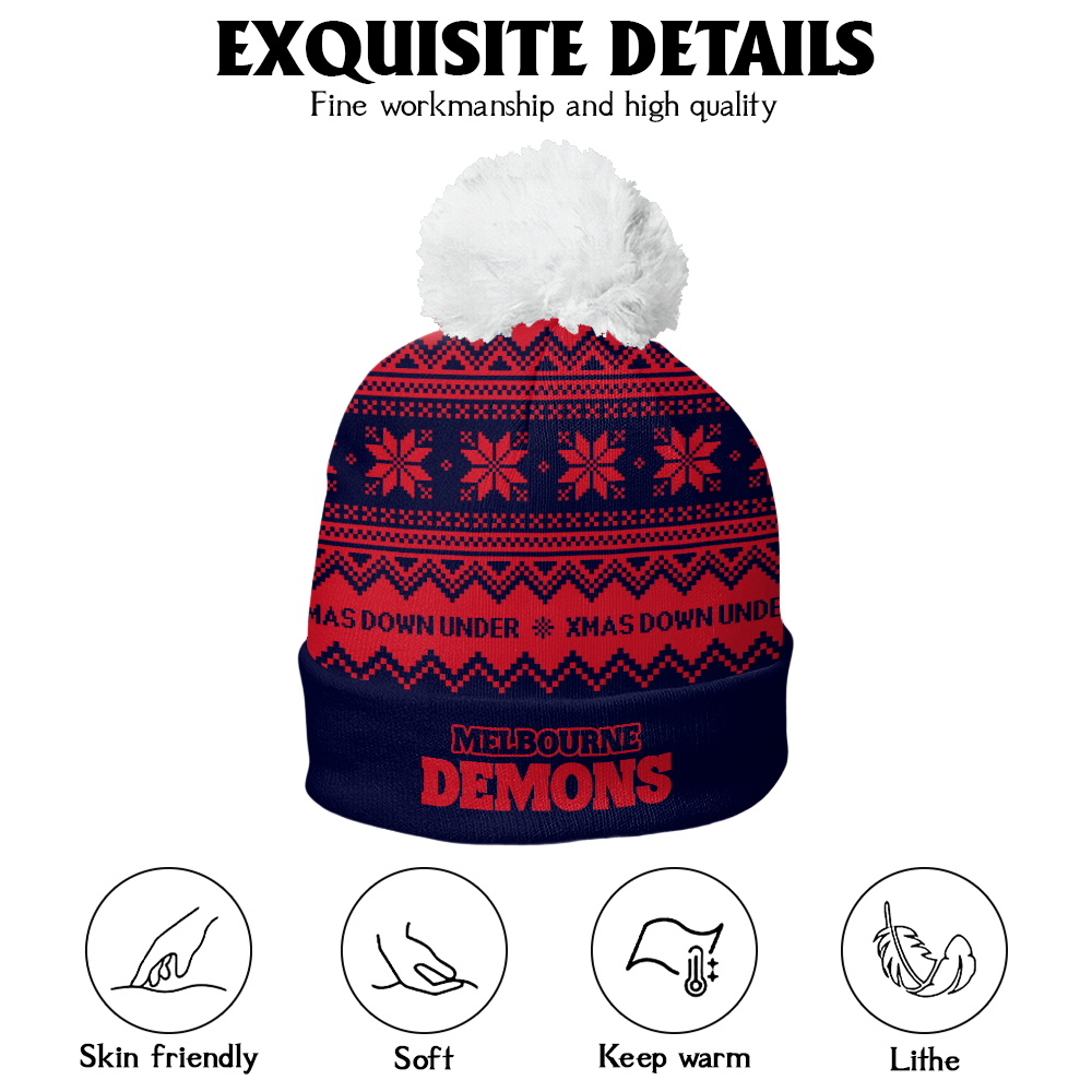 Melbourne Bobble Beanie Hat Merry Christmas United Fans Festive Knit Style