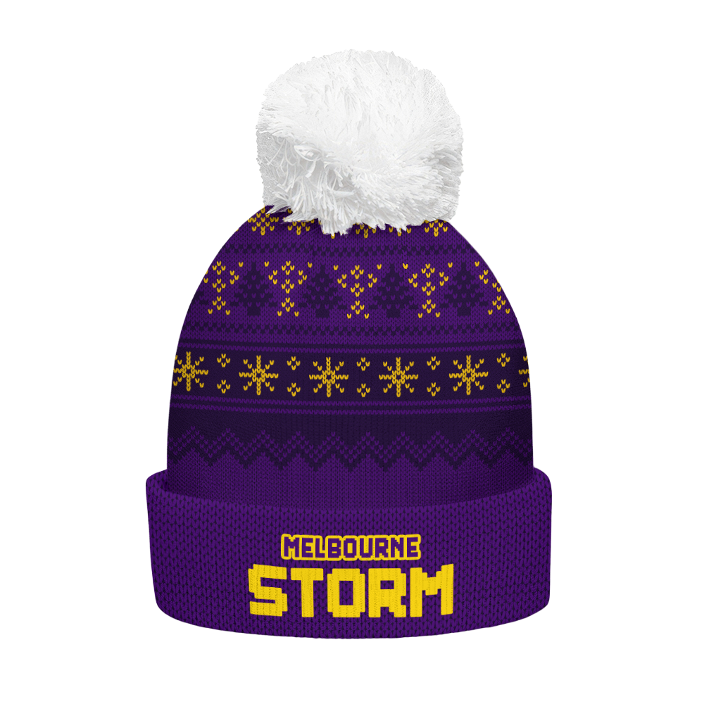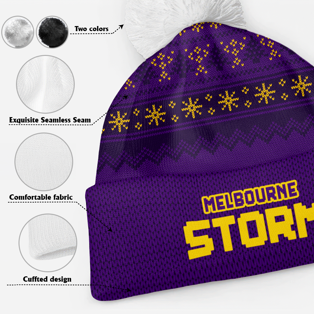 Melbourne Storm Bobble Beanie Hat Merry Christmas Heritage Team Spirit Knit Edition