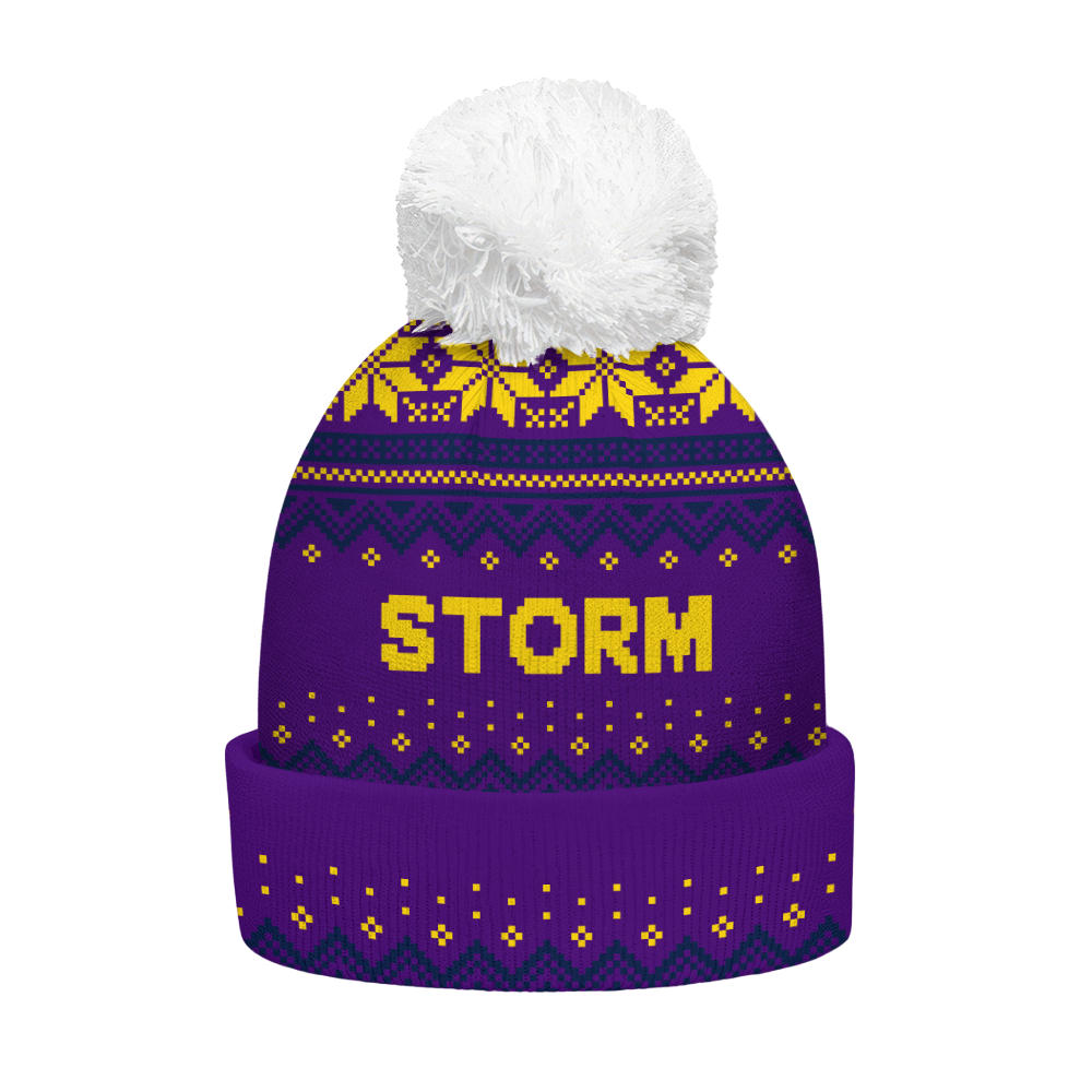 Melbourne Storm Bobble Beanie Hat Merry Christmas Urban Fans Knit Style Edition