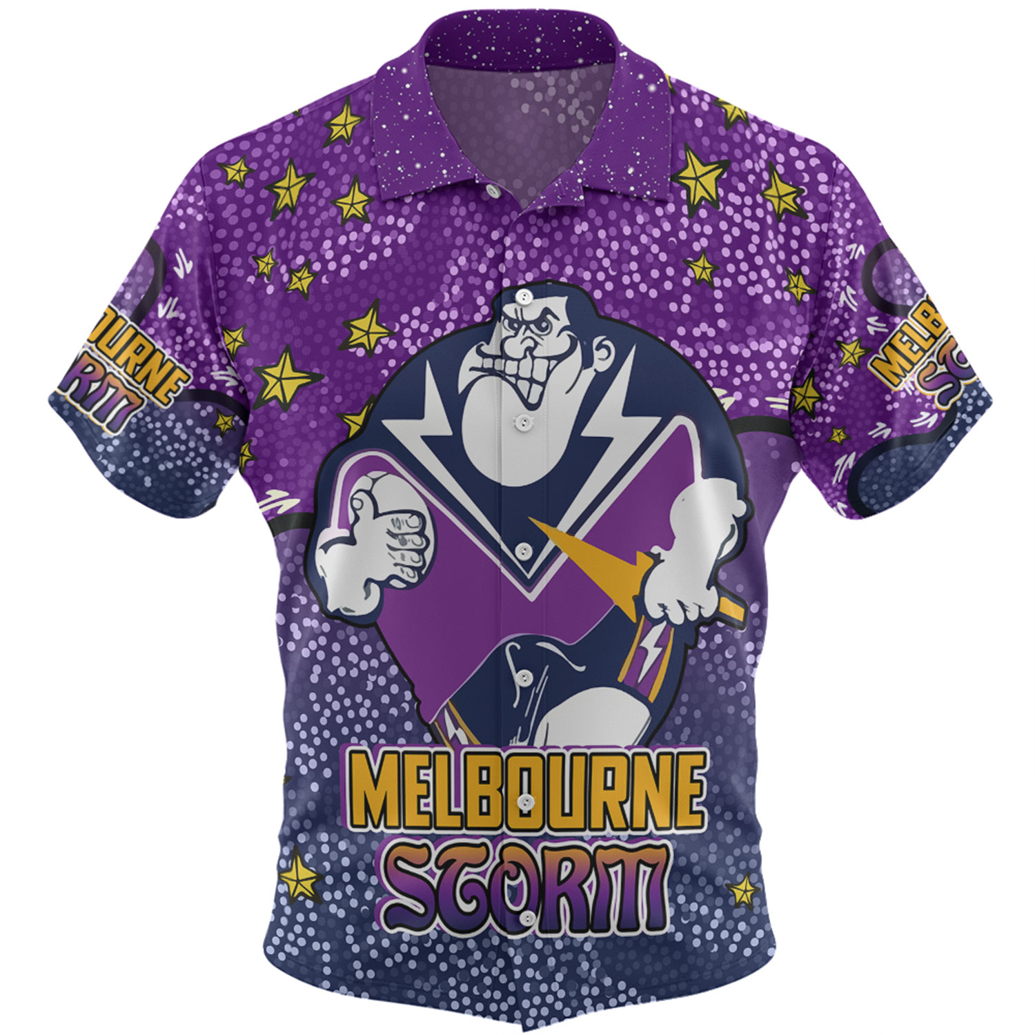 Melbourne Storm Custom Hawaiian Shirt - Team With Dot And Star Patterns For Tough Fan Hawaiian Shirt