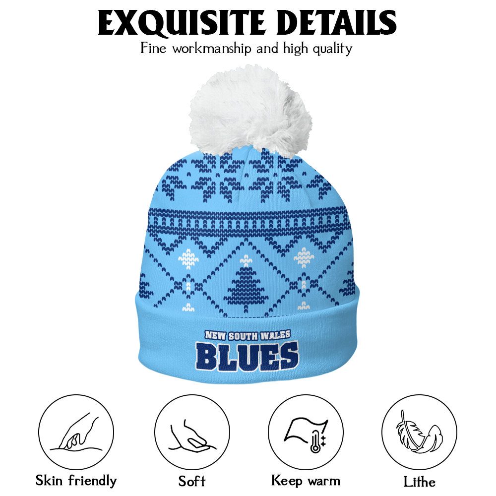 New South Wales Blues Bobble Beanie Hat Merry Christmas Game Ready Team Knit Edition