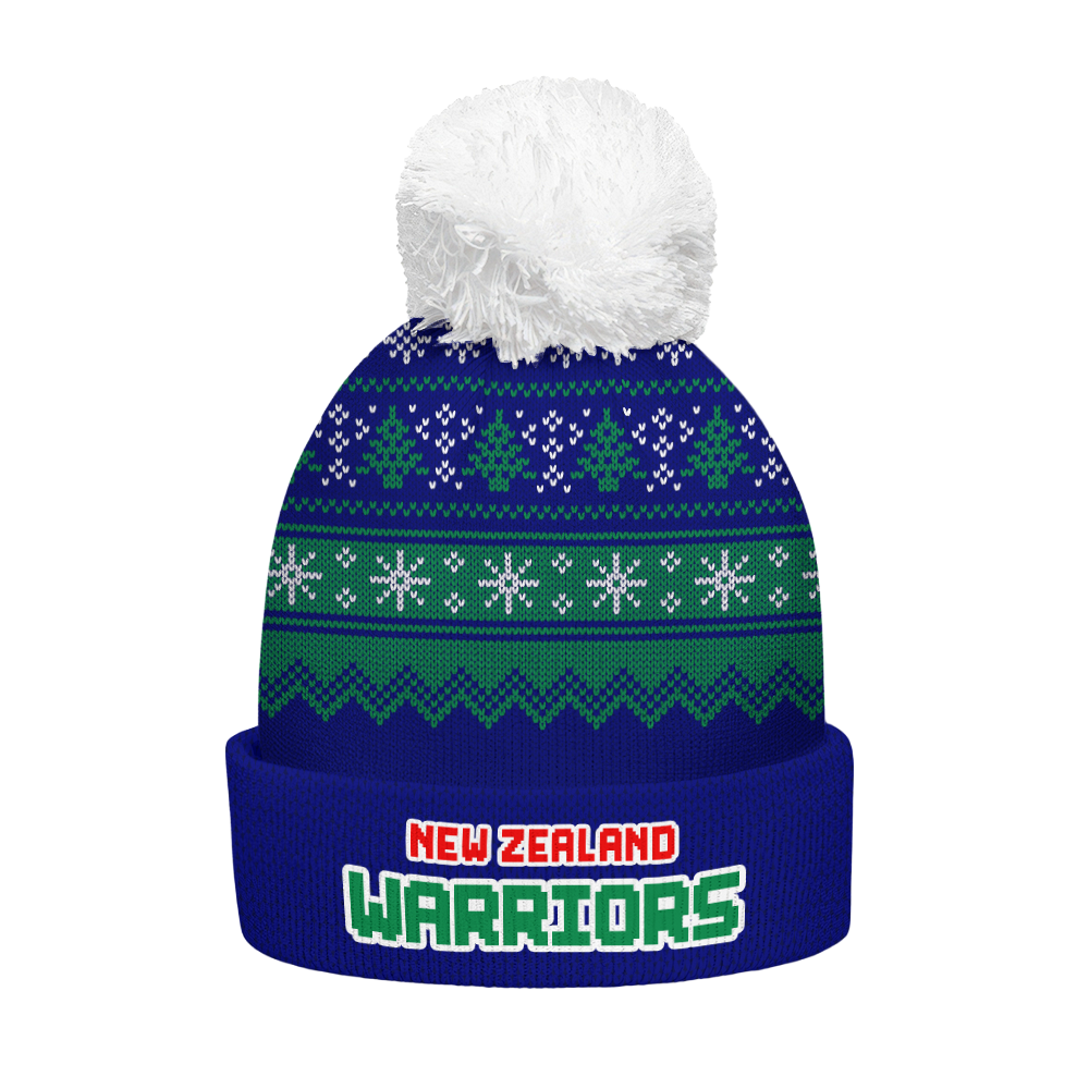 New Zealand Warriors Bobble Beanie Hat Merry Christmas Heritage Team Spirit Knit Edition