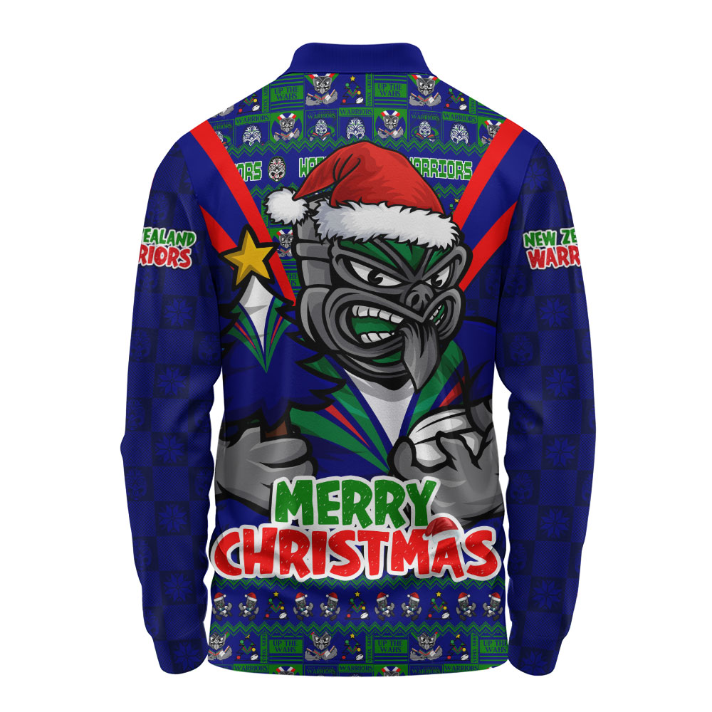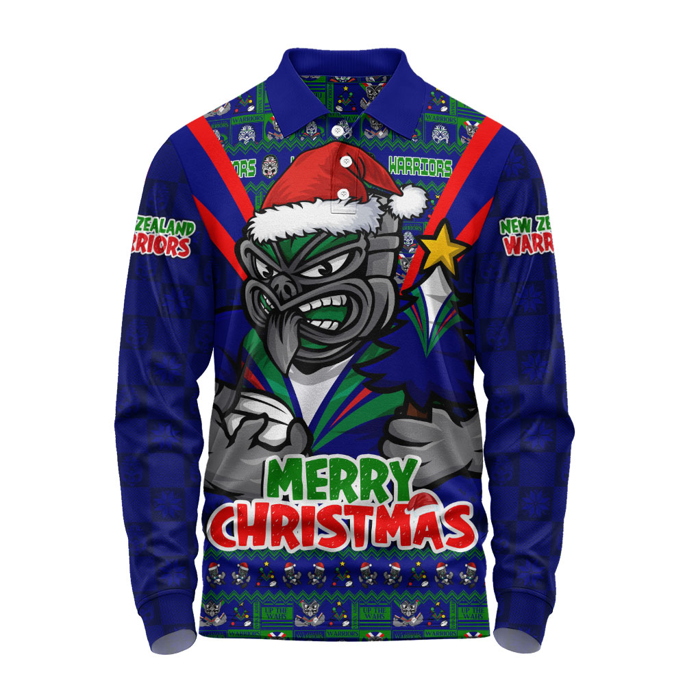 New Zealand Warriors Long Sleeve Polo Shirt Merry Christmas Festive Spirit Edition