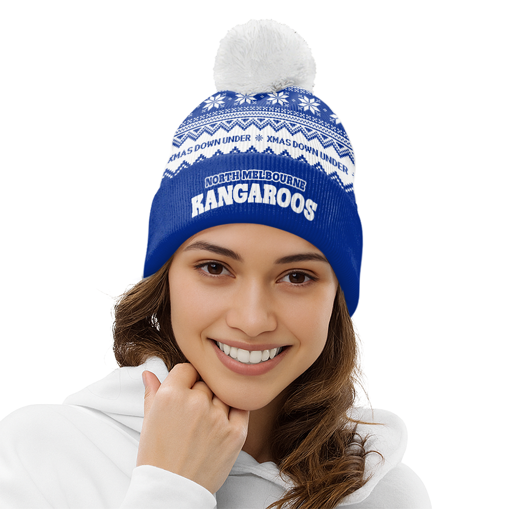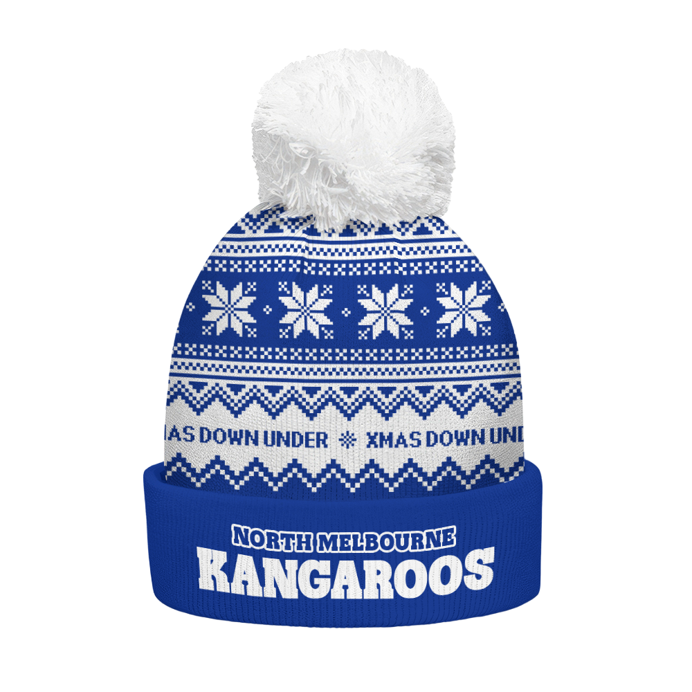 North Melbourne Bobble Beanie Hat Merry Christmas United Fans Festive Knit Style