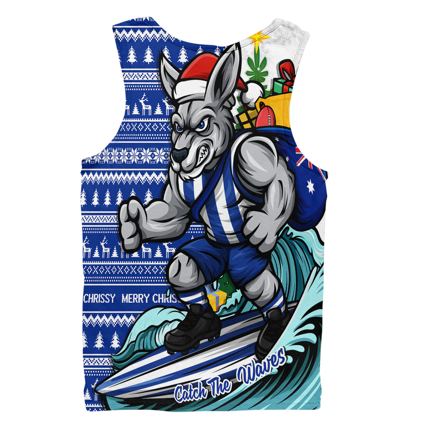 North Melbourne Men Singlet Christmas Holiday Santa Rides The Waves