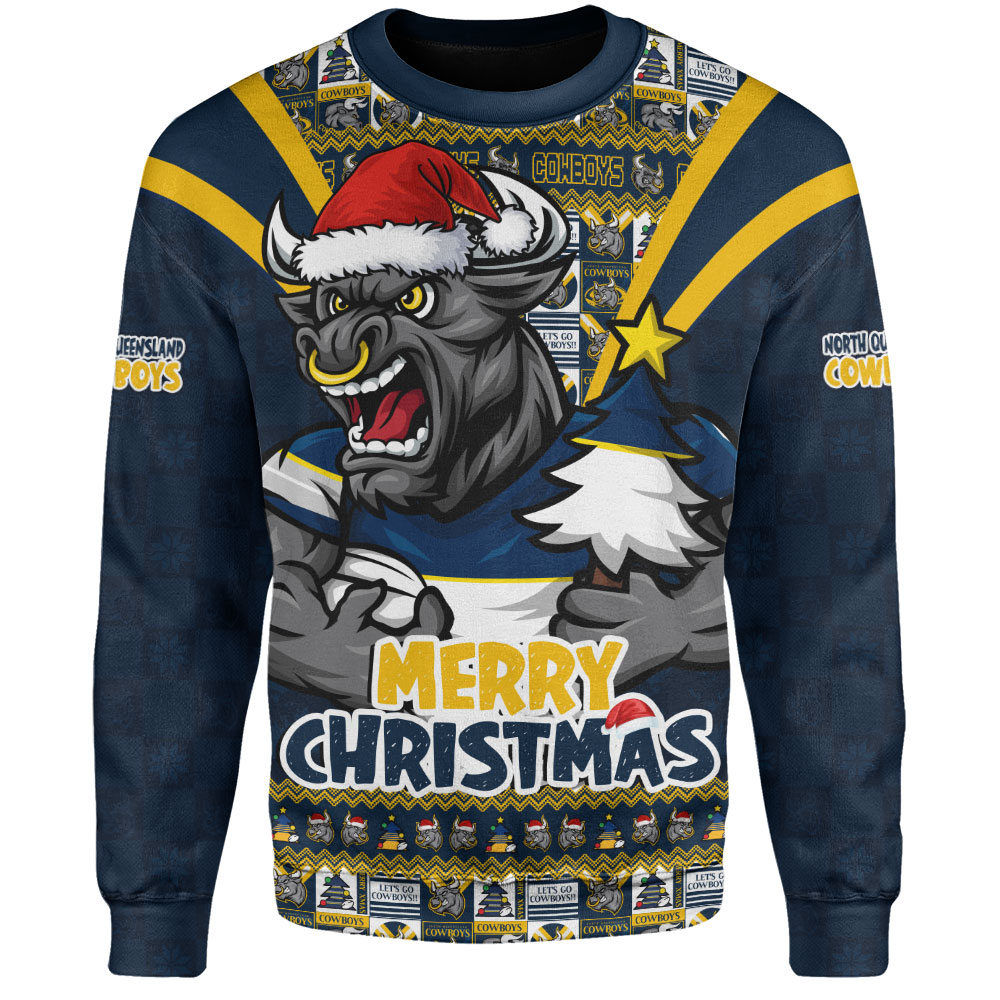 North Queensland Cowboys Sweatshirt Merry Christmas Festive Spirit Edition