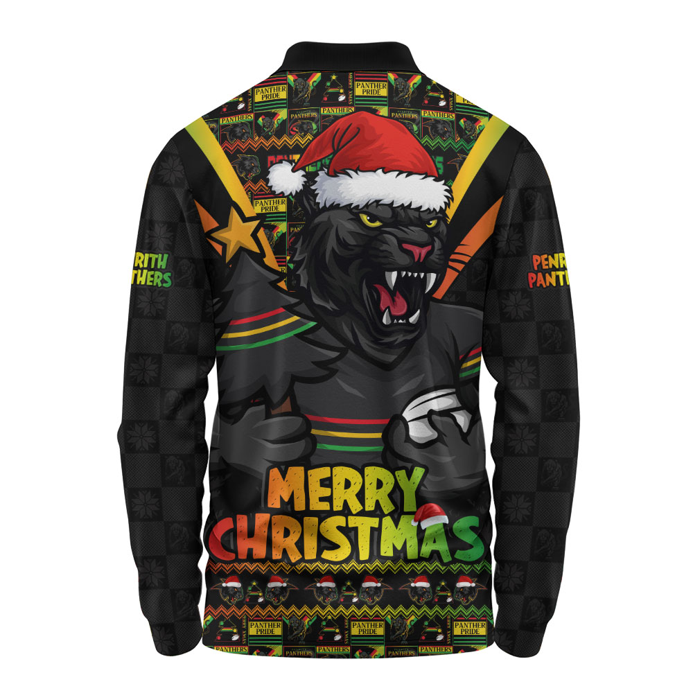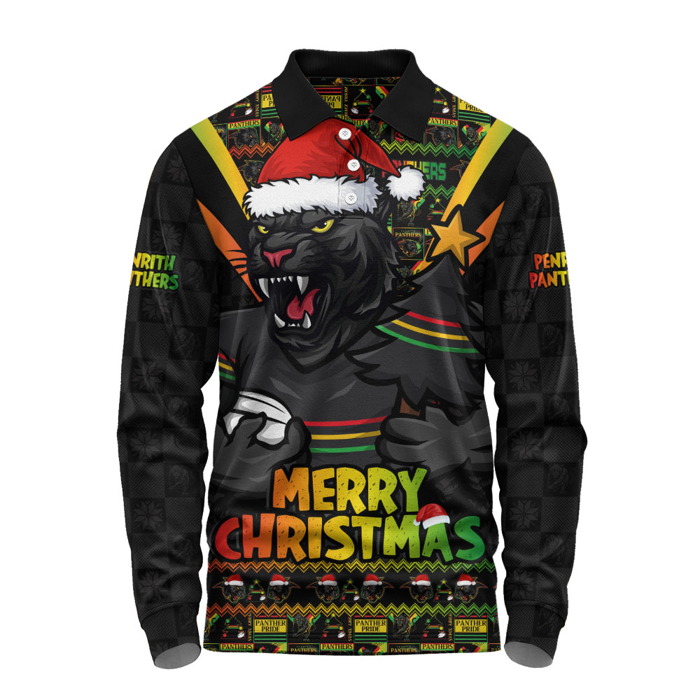 Penrith Panthers Long Sleeve Polo Shirt Merry Christmas Festive Spirit Edition