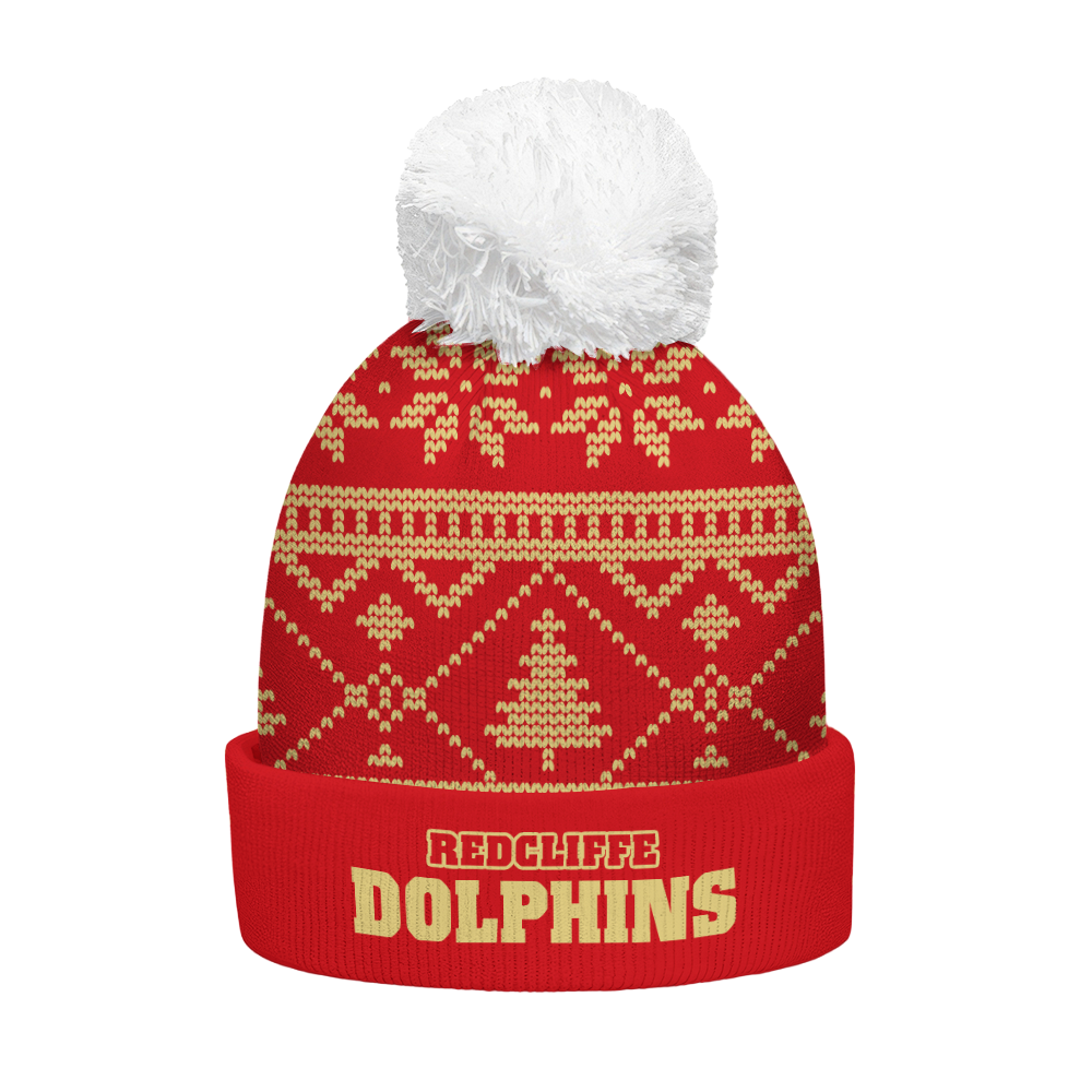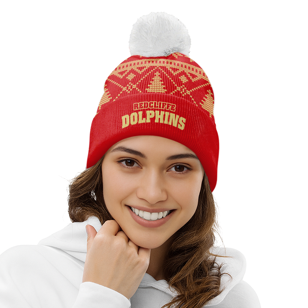 Redcliffe Dolphins Bobble Beanie Hat Merry Christmas Game Ready Team Knit Edition