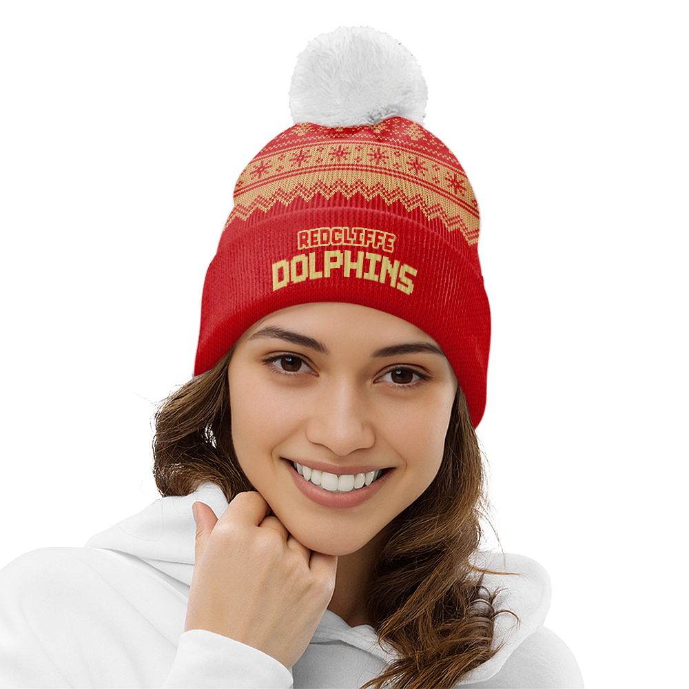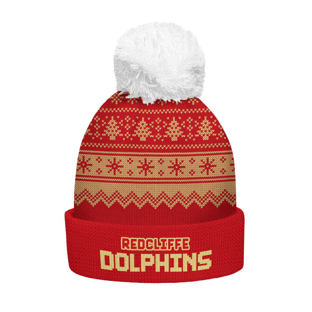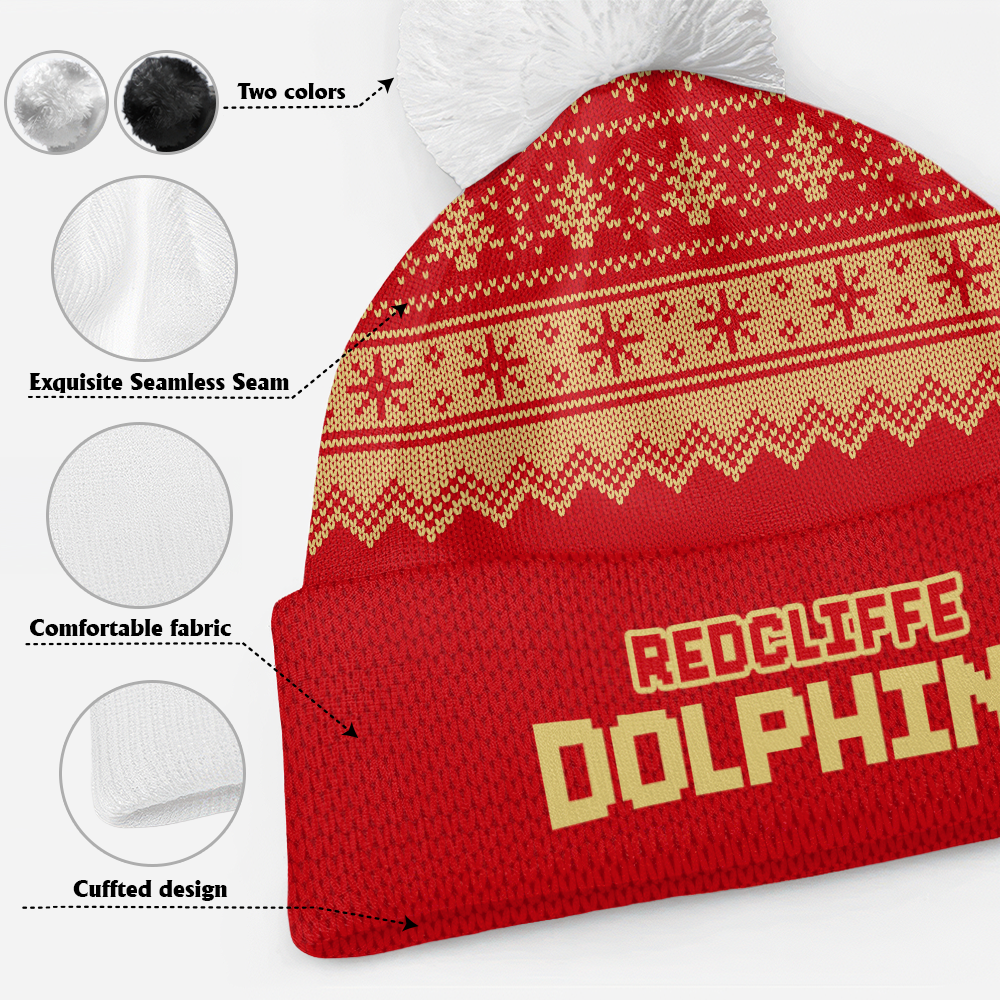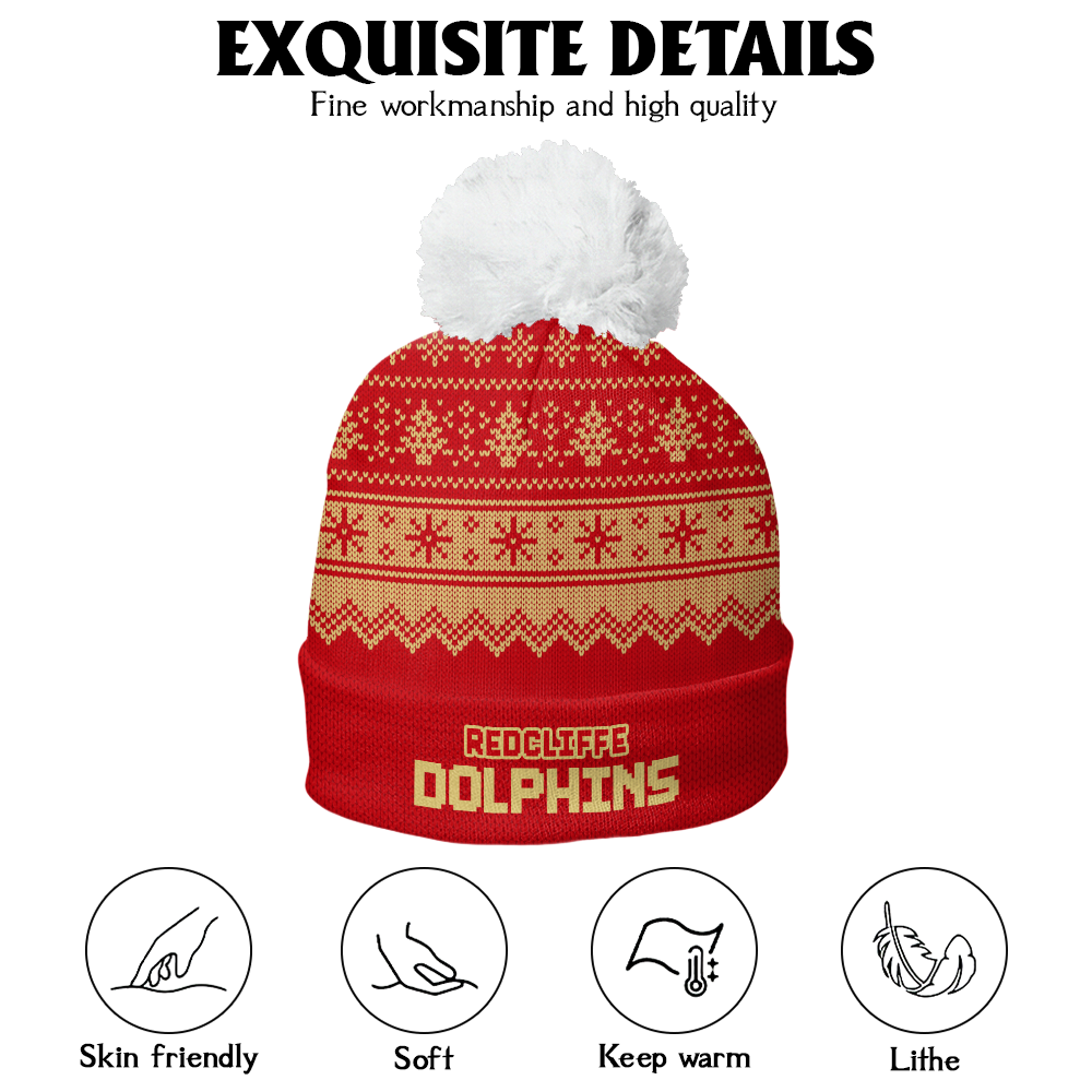Redcliffe Dolphins Bobble Beanie Hat Merry Christmas Heritage Team Spirit Knit Edition