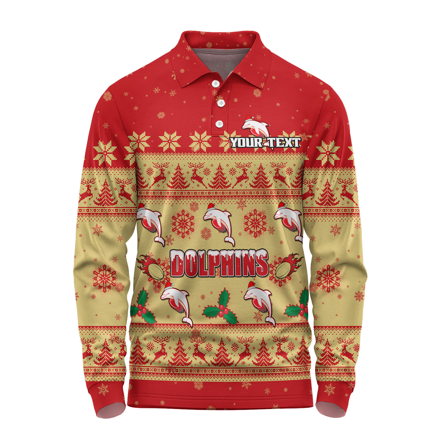 Redcliffe Dolphins Christmas Custom Long Sleeve Polo Shirt - Special Ugly Christmas Long Sleeve Polo Shirt