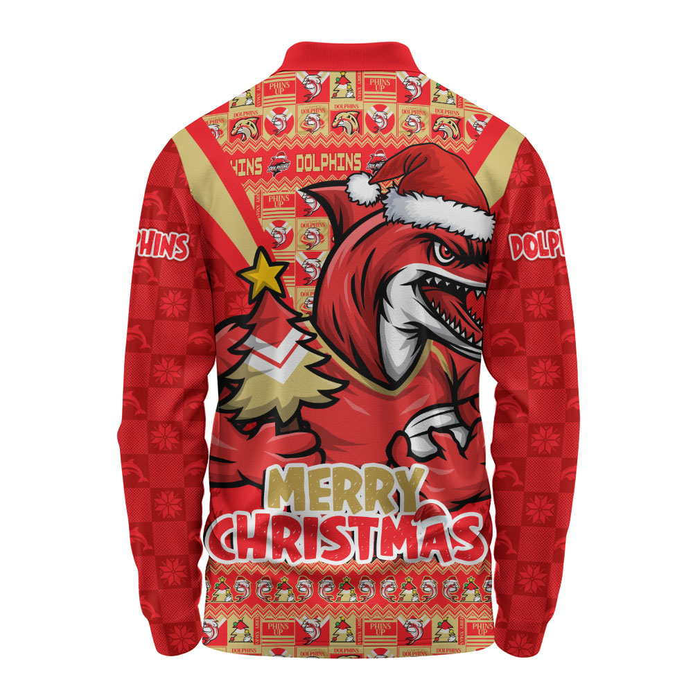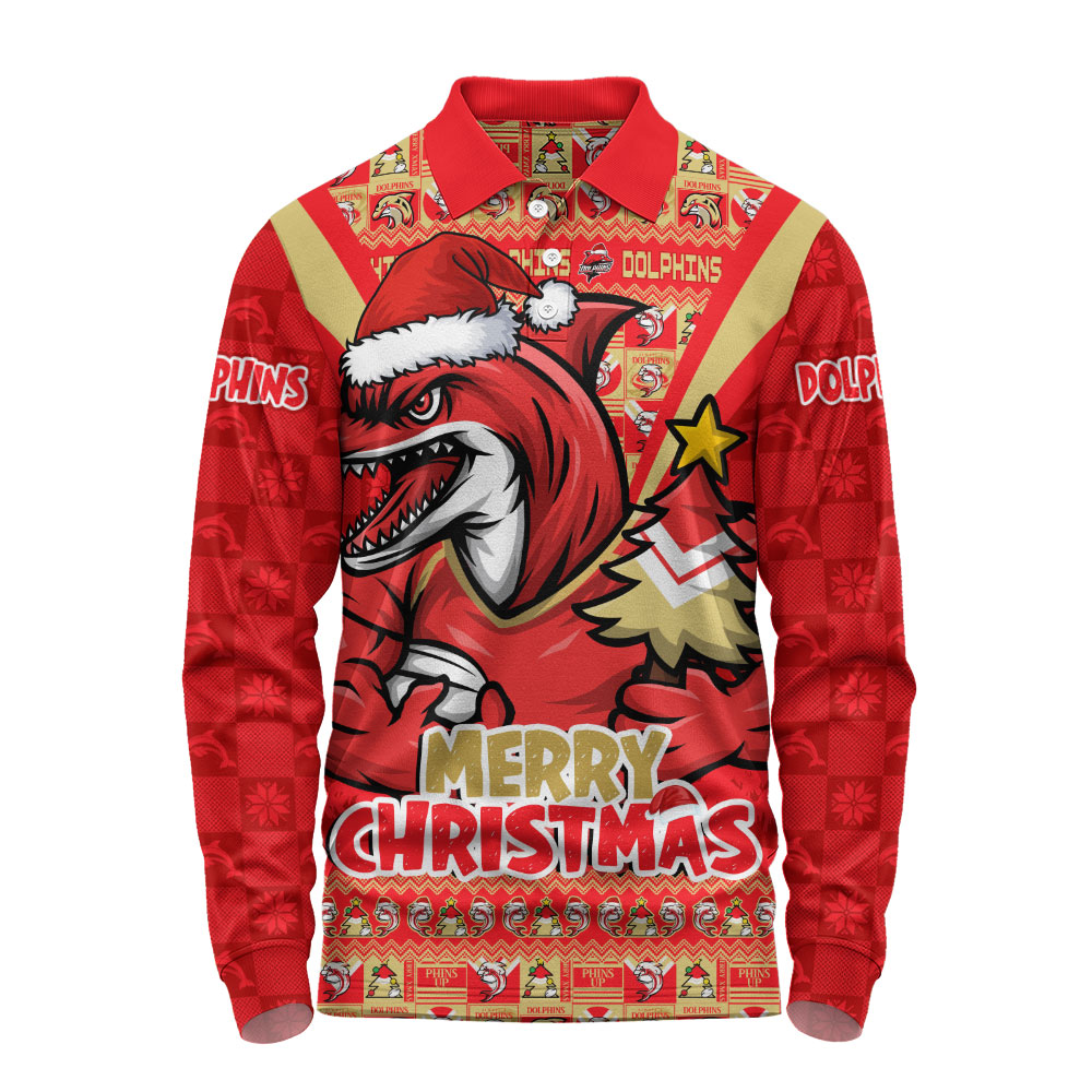 Redcliffe Dolphins Long Sleeve Polo Shirt Merry Christmas Festive Spirit Edition