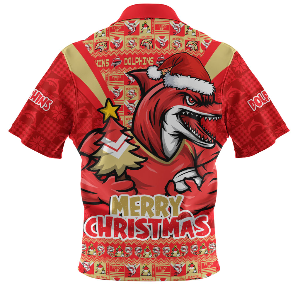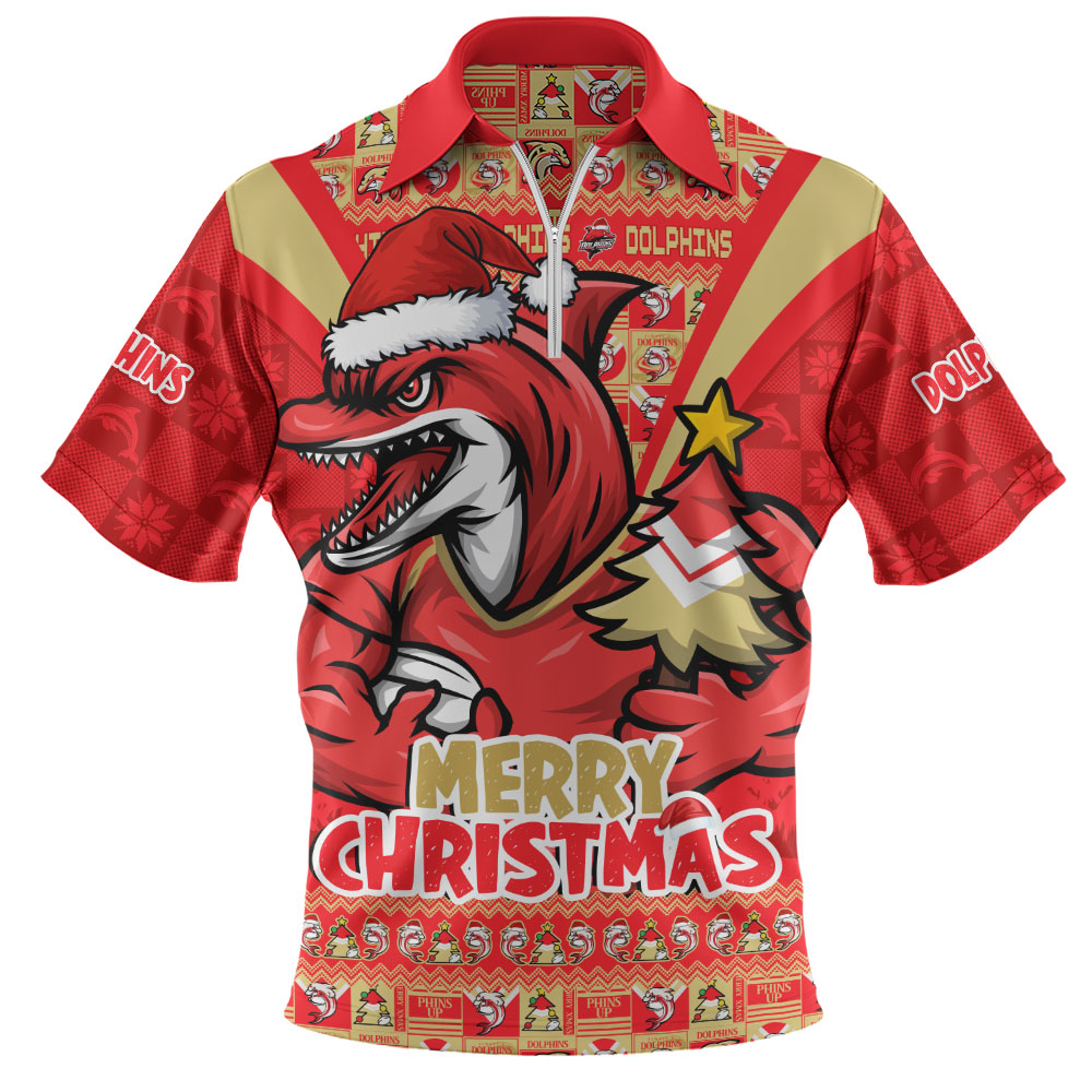 Redcliffe Dolphins Zip Polo Shirt Merry Christmas Festive Spirit Edition