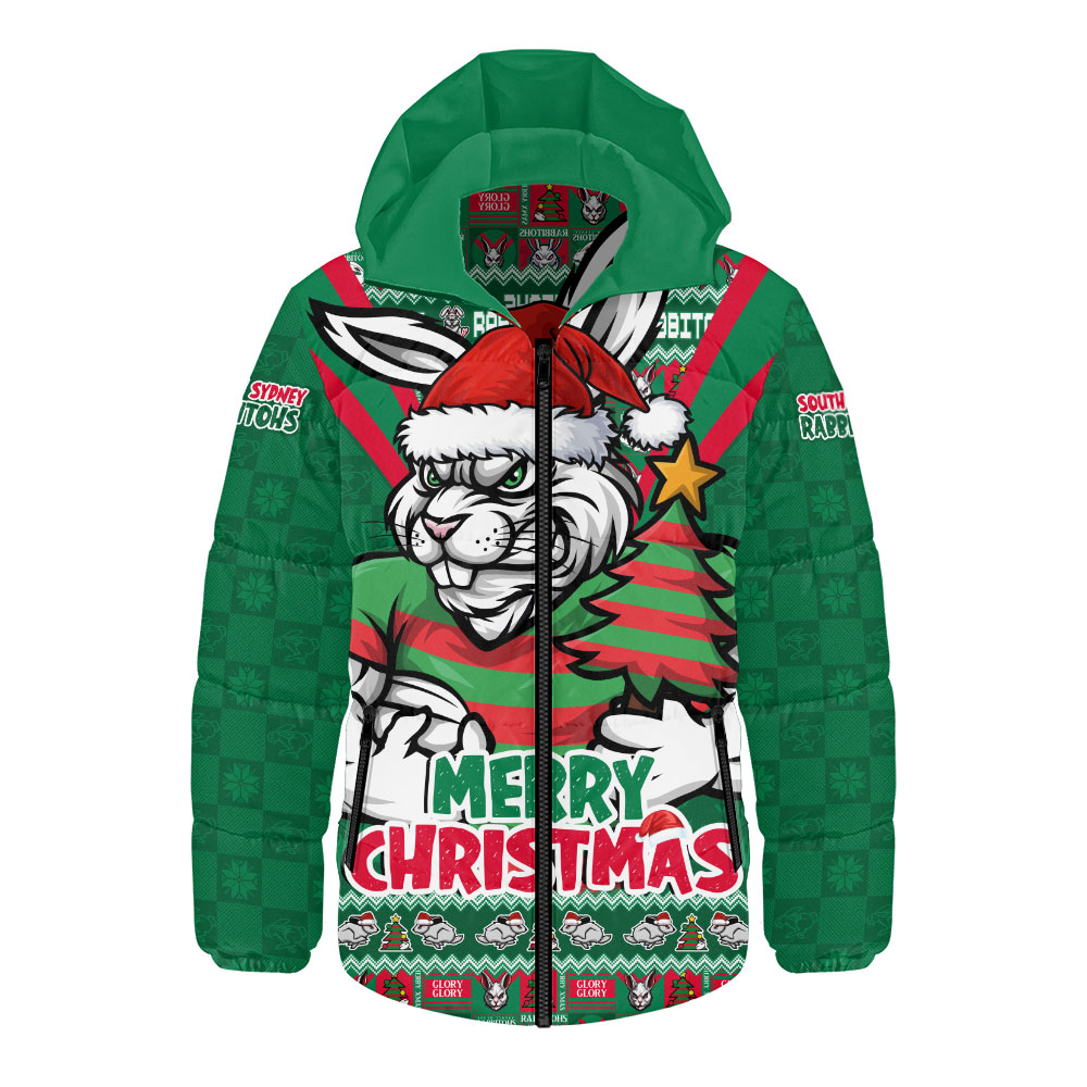 South Sydney Rabbitohs Hooded Padded Jacket Merry Christmas Festive Spirit Edition