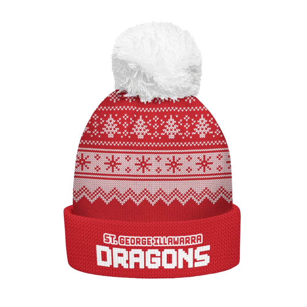 St. George Illawarra Dragons Bobble Beanie Hat Merry Christmas Heritage Team Spirit Knit Edition