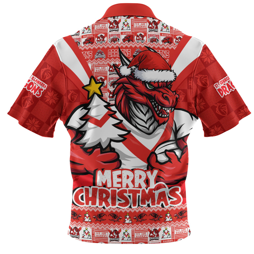 St. George Illawarra Dragons Zip Polo Shirt Merry Christmas Festive Spirit Edition