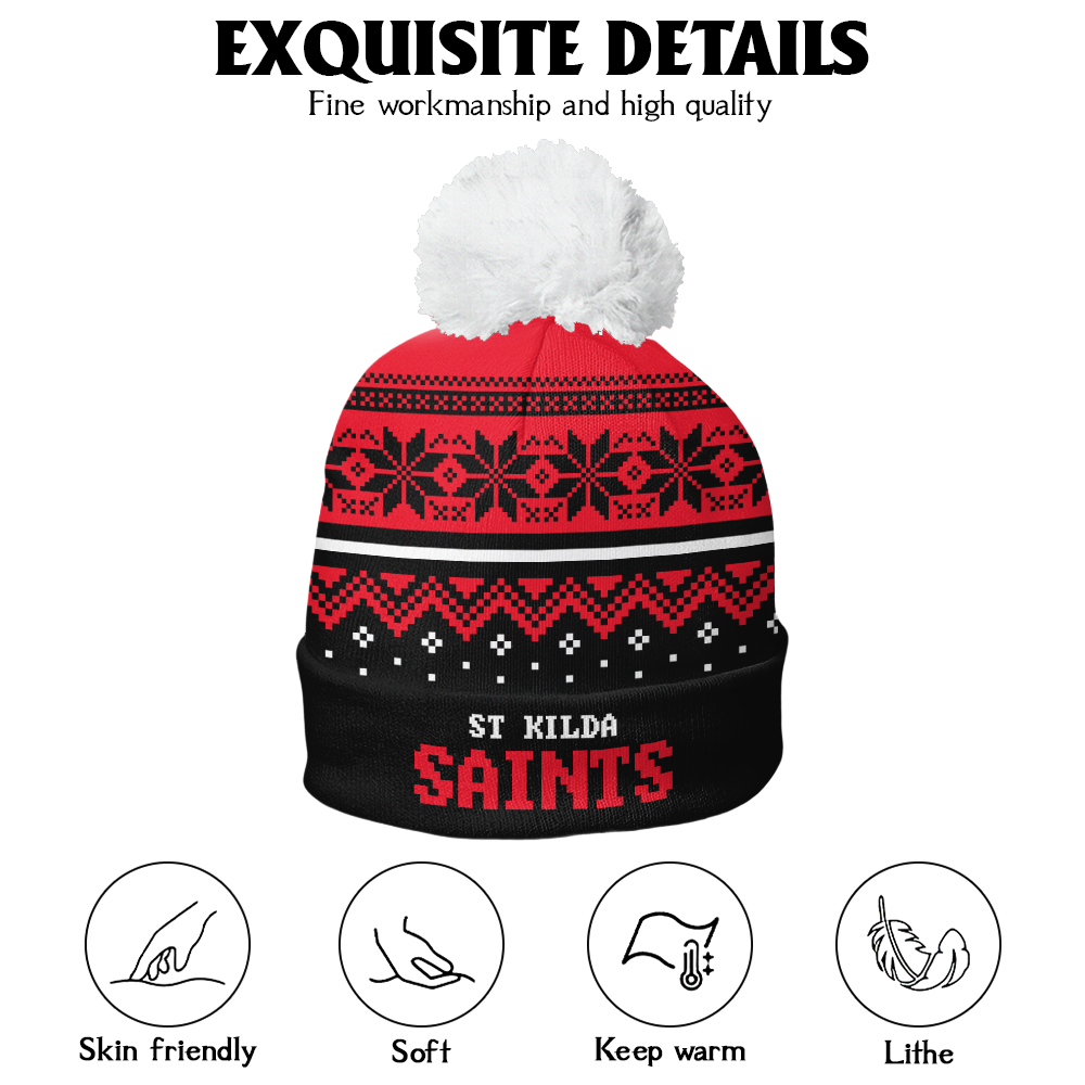 St Kilda Bobble Beanie Hat Merry Christmas Knit Edition For United Fans