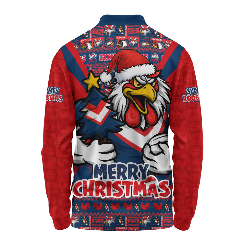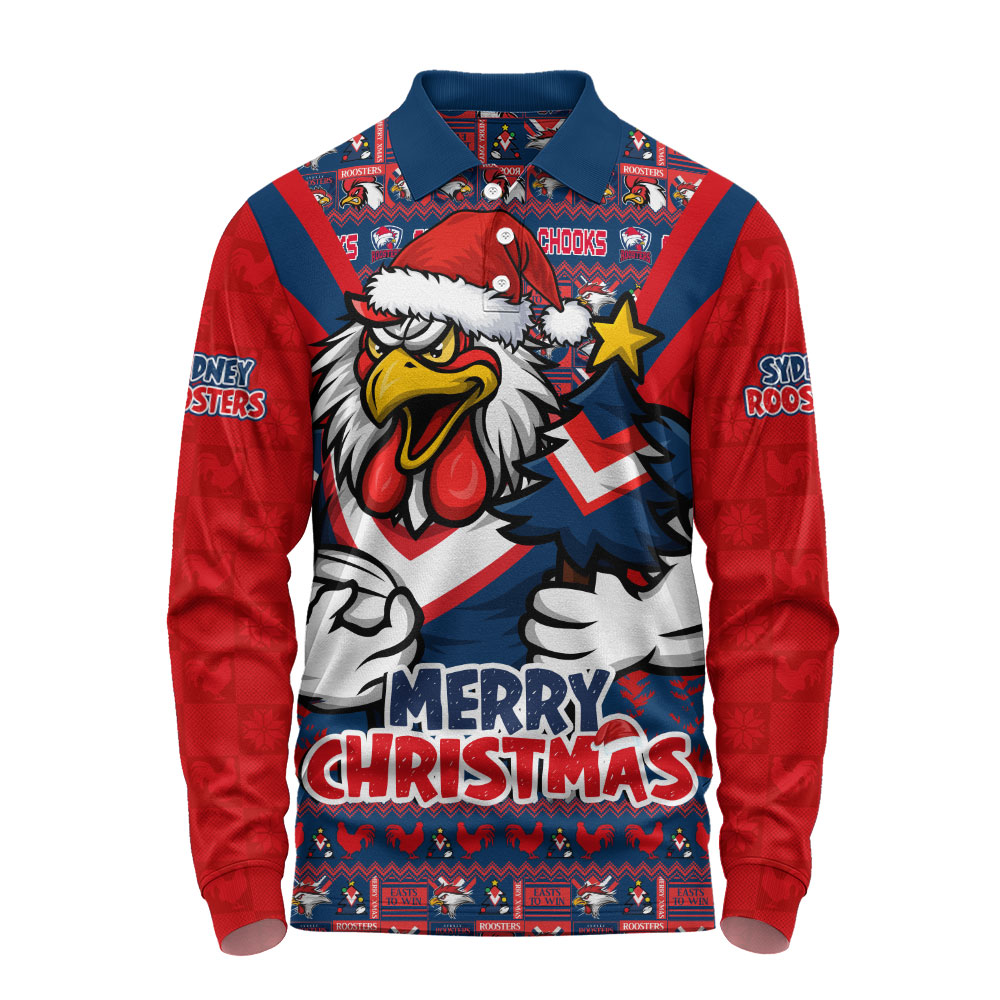 Sydney Roosters Long Sleeve Polo Shirt Merry Christmas Festive Spirit Edition