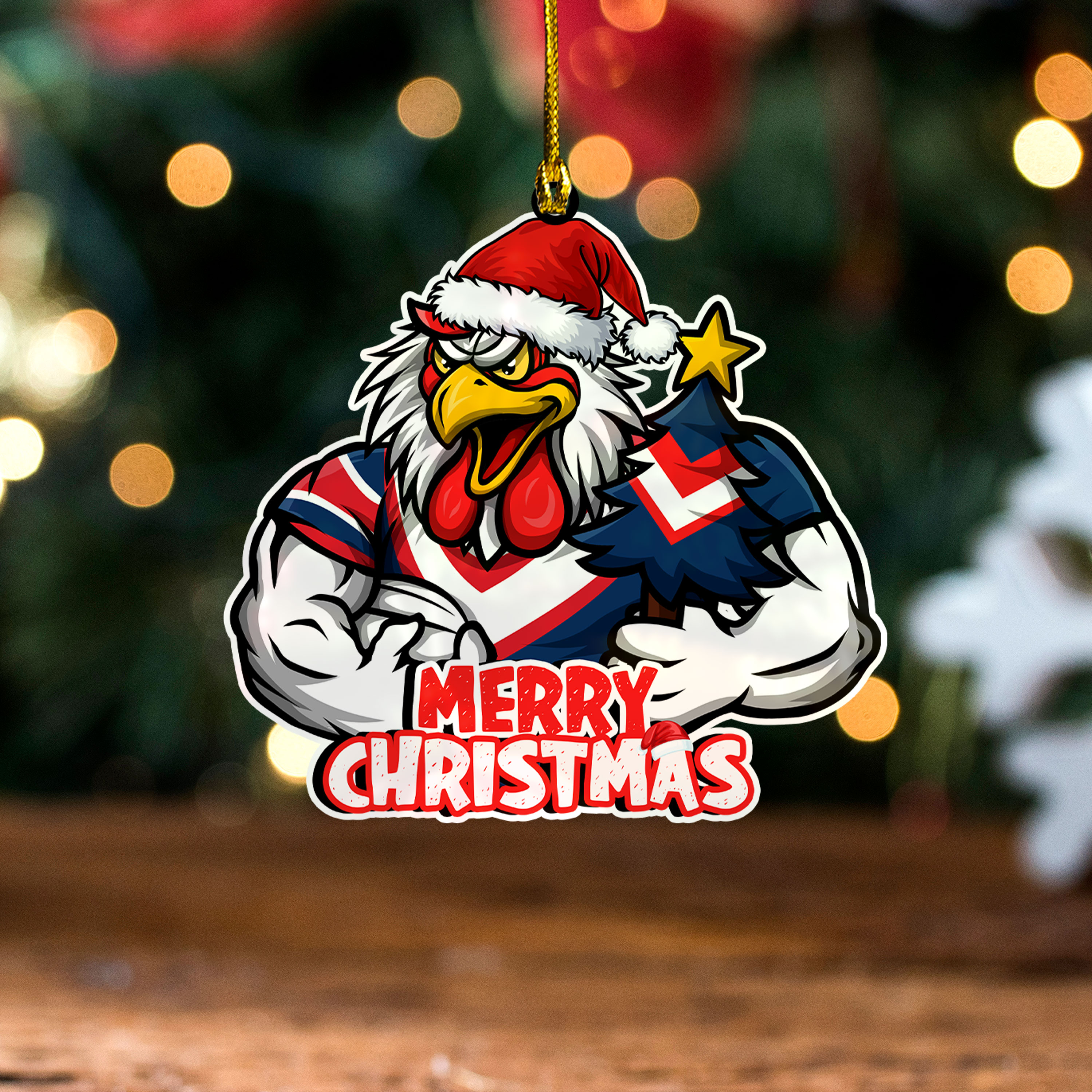Sydney Roosters Wood Acrylic Ornament Merry Christmas Tough Edition