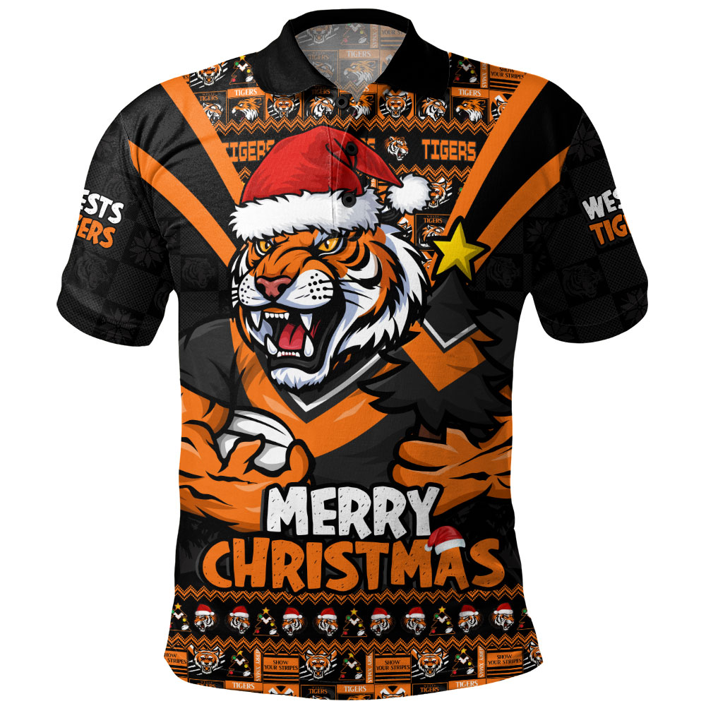 Wests Tigers Polo Shirt Merry Christmas Festive Spirit Edition