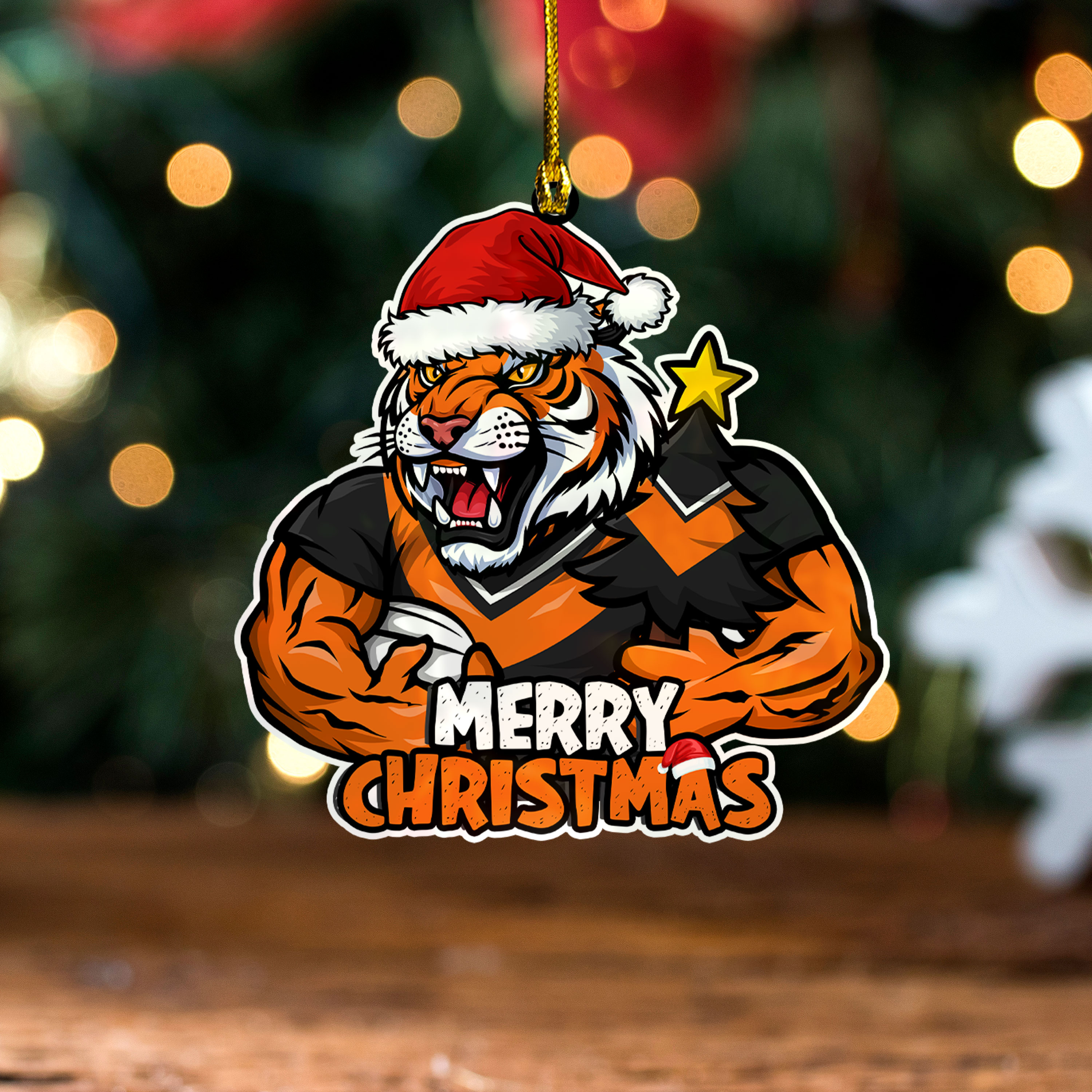 Wests Tigers Wood Acrylic Ornament Merry Christmas Tough Edition
