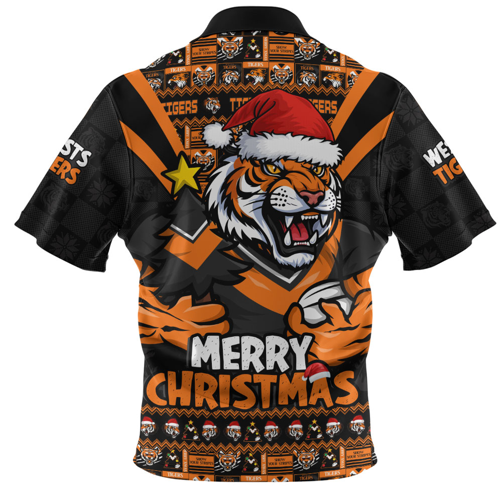 Wests Tigers Zip Polo Shirt Merry Christmas Festive Spirit Edition